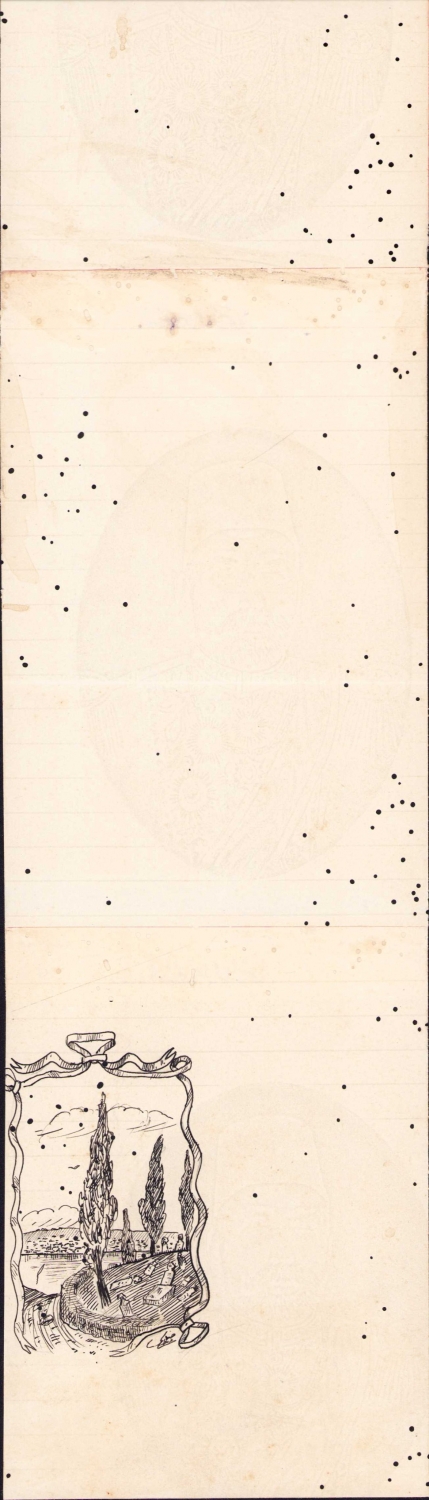 Arkasında bir kabristan çizimi bulunmaktadır.