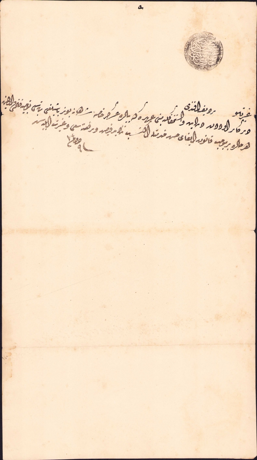 Redif Paşa'ya Asker-i Hassa-i Şahane Yüzbaşılığı tevcihi belgesi, 1274 tarihli, damgalı, Osmanlıca, 21x38,5 cm.