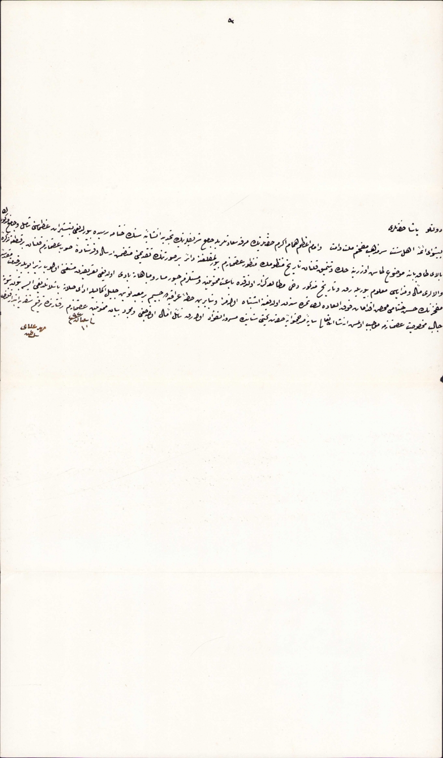 İmam-ı Azam Hazretleri'nin merkad-i şeriflerinin tecdidi ile alakalı Osmanlıca belge, 10 Şaban 1292 tarihli, 23x39,5 cm.