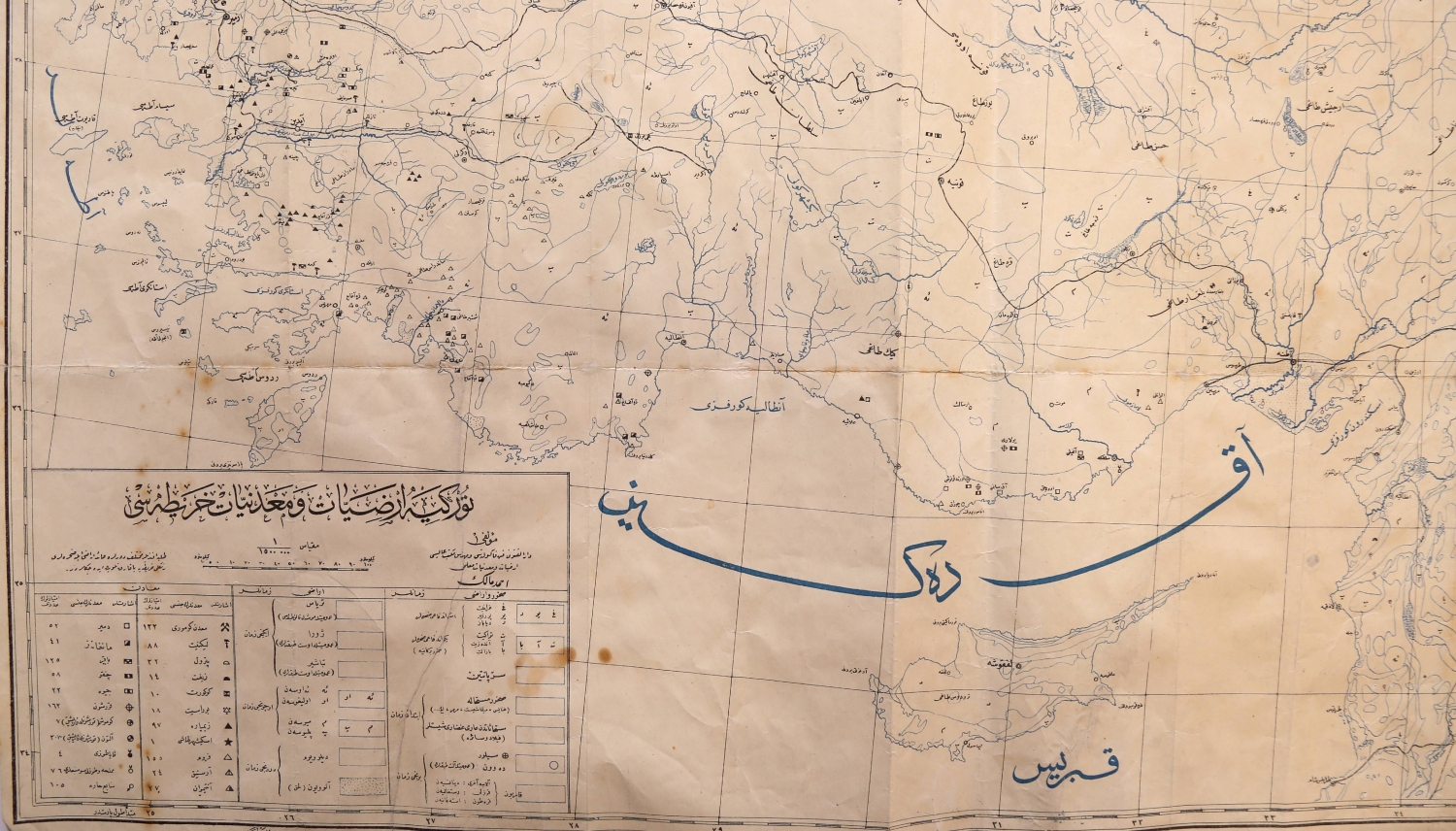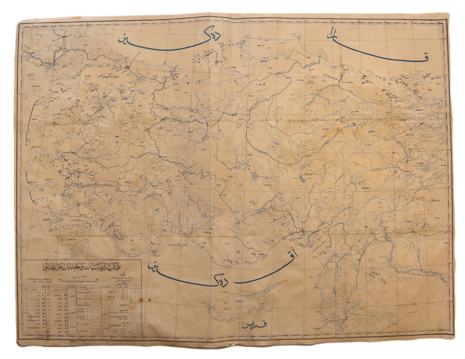 Türkiye Arziyat [Jeoloji] ve Madeniyat Haritası, Osmanlıca, Milli Matbaa, Mikyası: 1.500.000, 85,5x64,5 cm.