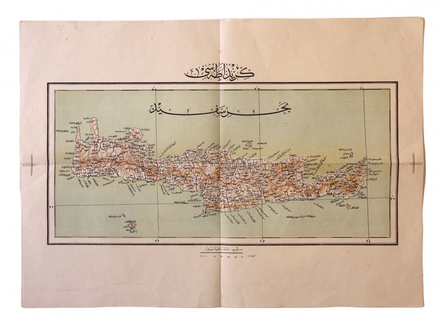 Girid Adası Haritası, Mikyası: 1/600.000, Osmanlıca, 49x23 cm.