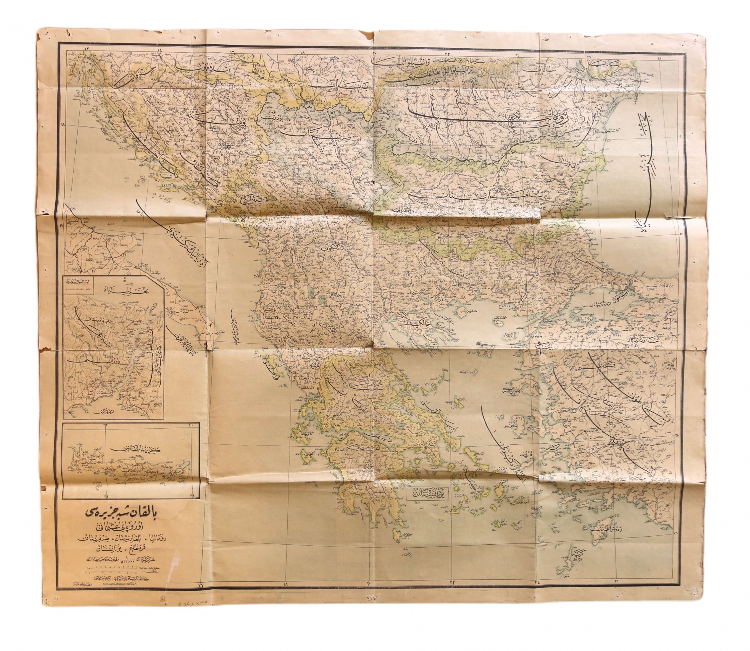 Balkan Şibh-i Ceziresi [Yarımadası] Haritası, Avrupa-yı Osmani, Romanya, Bulgaristan, Sırbistan, Karadağ ve Yunanistan, Osmanlıca, Mikyası: 1/500.000, Kitabhane-i İslam u Askeri: İbrahim Hilmi.