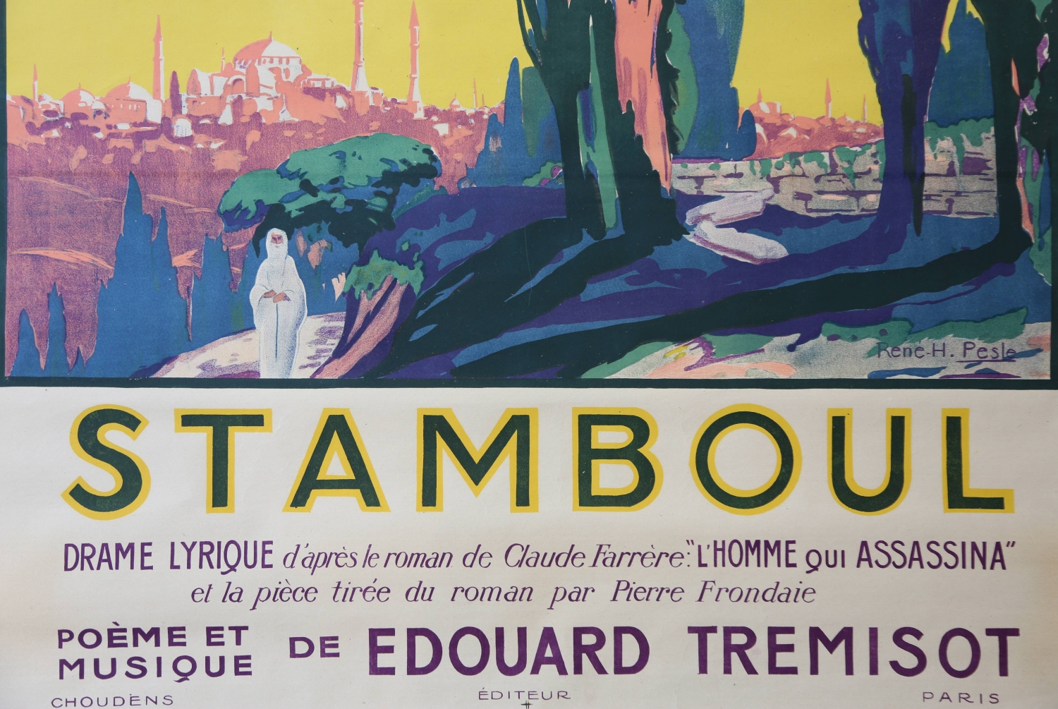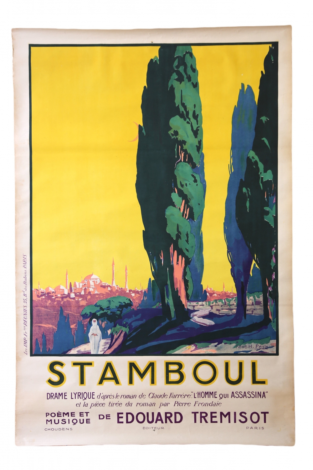 Stamboul [İstanbul] afiş, Drame Lyrique d‘apres le Roman de Claude Farrere [Claude Farrere'in romanından uyarlanan lirik dram] Rene H. Pesle, renkli taş baskı tekniğiyle, 80x120 cm.