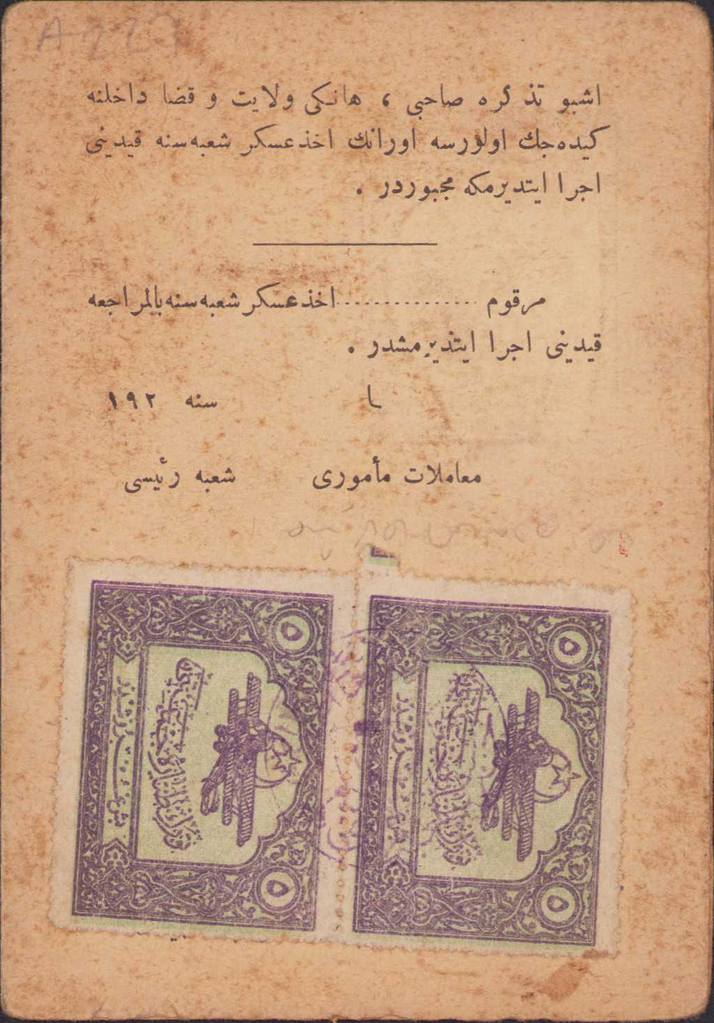Halil Hayrettin Bey, Şimendifer bölüğü, 1927 ihtiyat tezkiresi, Türkiye Cumhuriyeti Fatih Sultanahmet Askerlik Şubesi adresli, Ahmet İhsan Matbaası, pullu