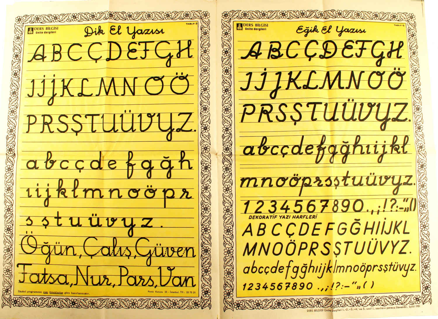 Ders Bilgisi Ünite Dergileri, 1. sınıf Güzel Yazı Alfabesi Afişi, 1981 tarihli Büyük boy 34x50