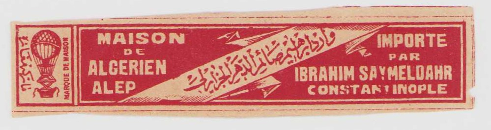 Gaz Şirketi olan İbrahim Salmerdahr'in Osmanlıca ve Fransızca iki dilli etiketi, 12x2,5