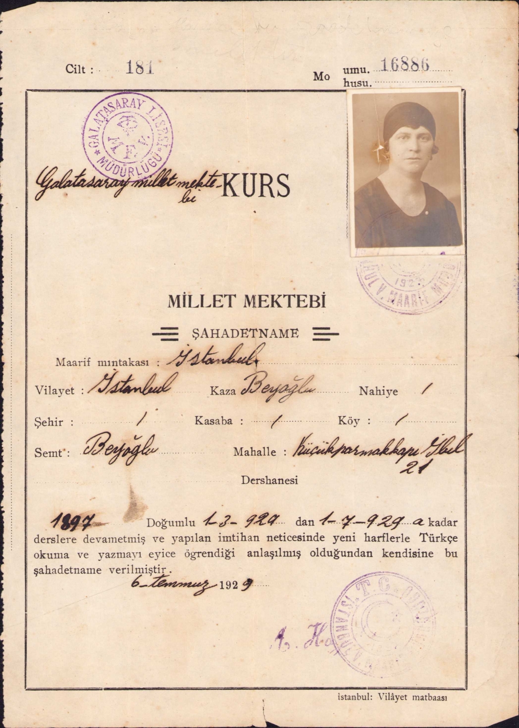 Galatasaray Millet Mektebi Kurs Şehadetname, 1929, 17x24 cm