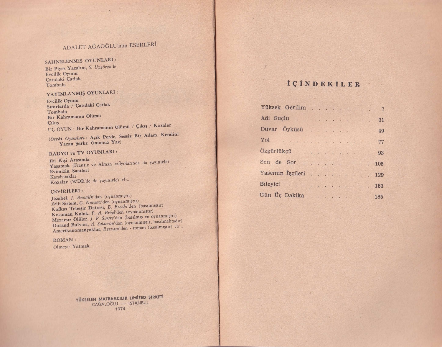 Yüksek Gerilim, Adalet Ağaoğlu, Remzi Kitabevi, 1974, 207 sayfa, 14x20 cm.