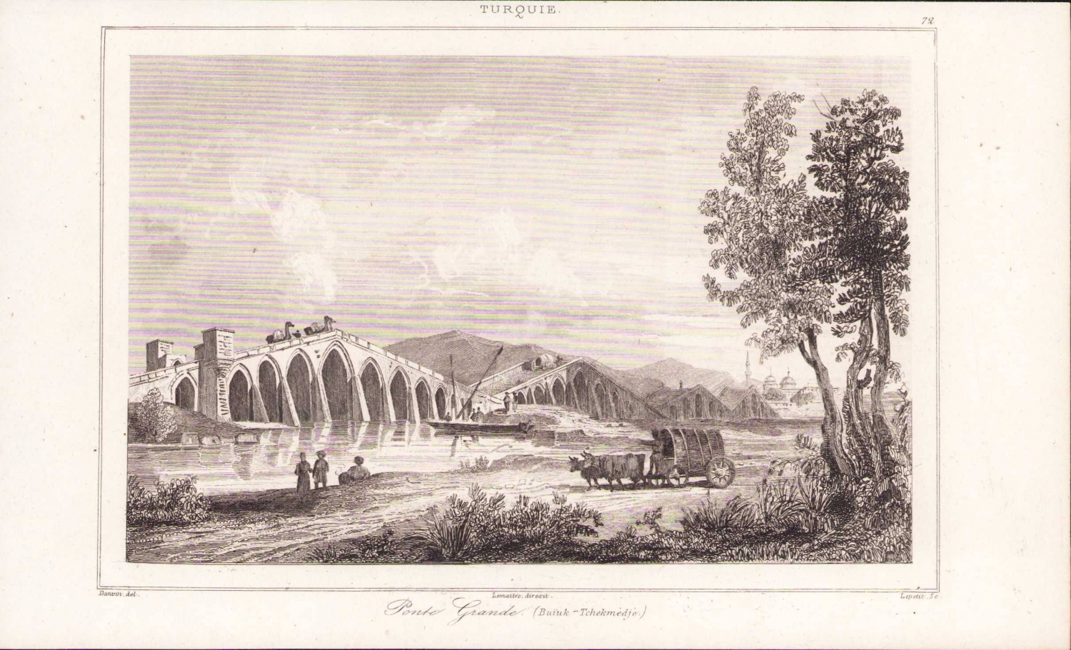 Osmanlı dönemi gravür Büyükçekmece Gölü, 19x12 cm