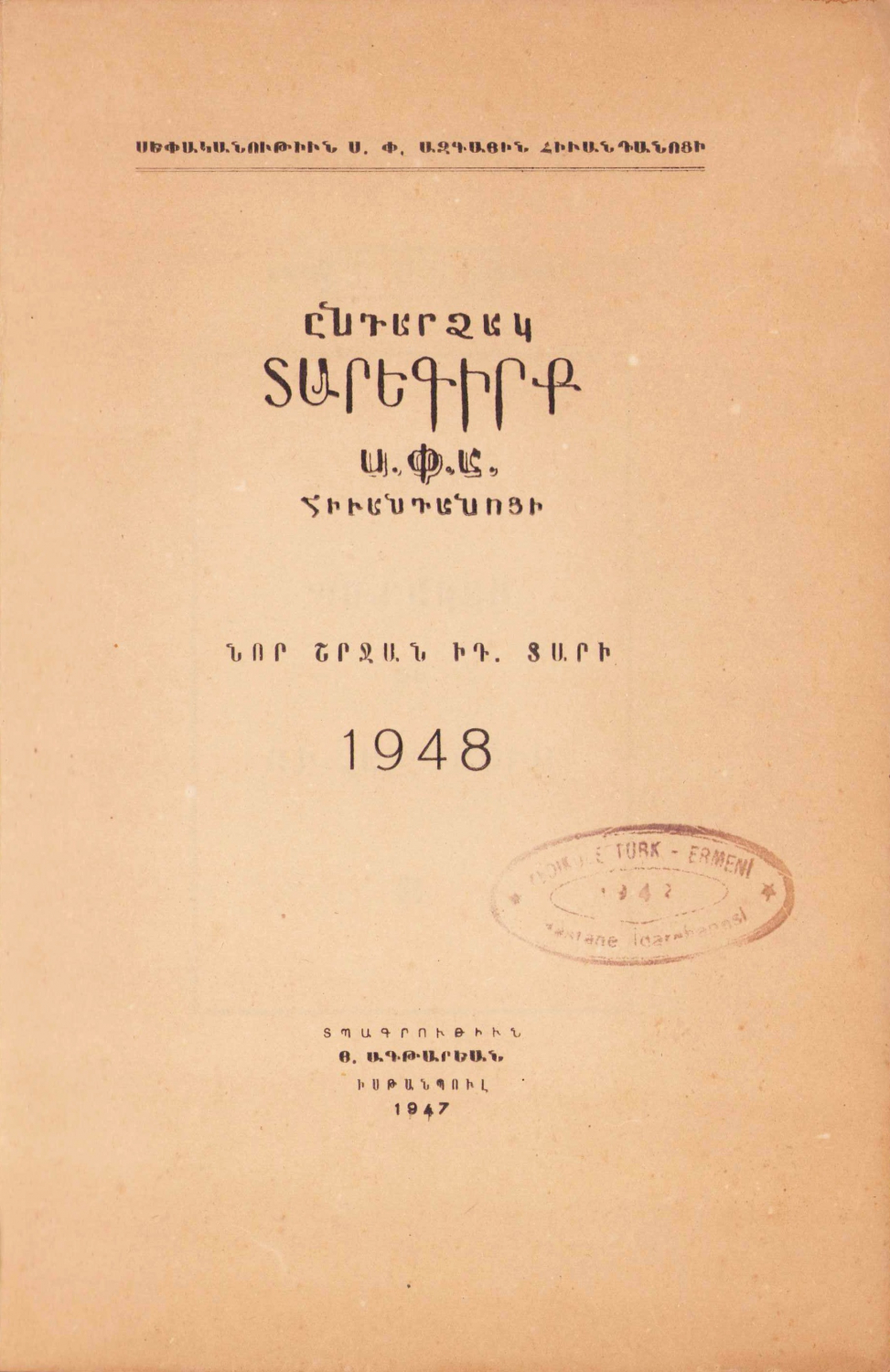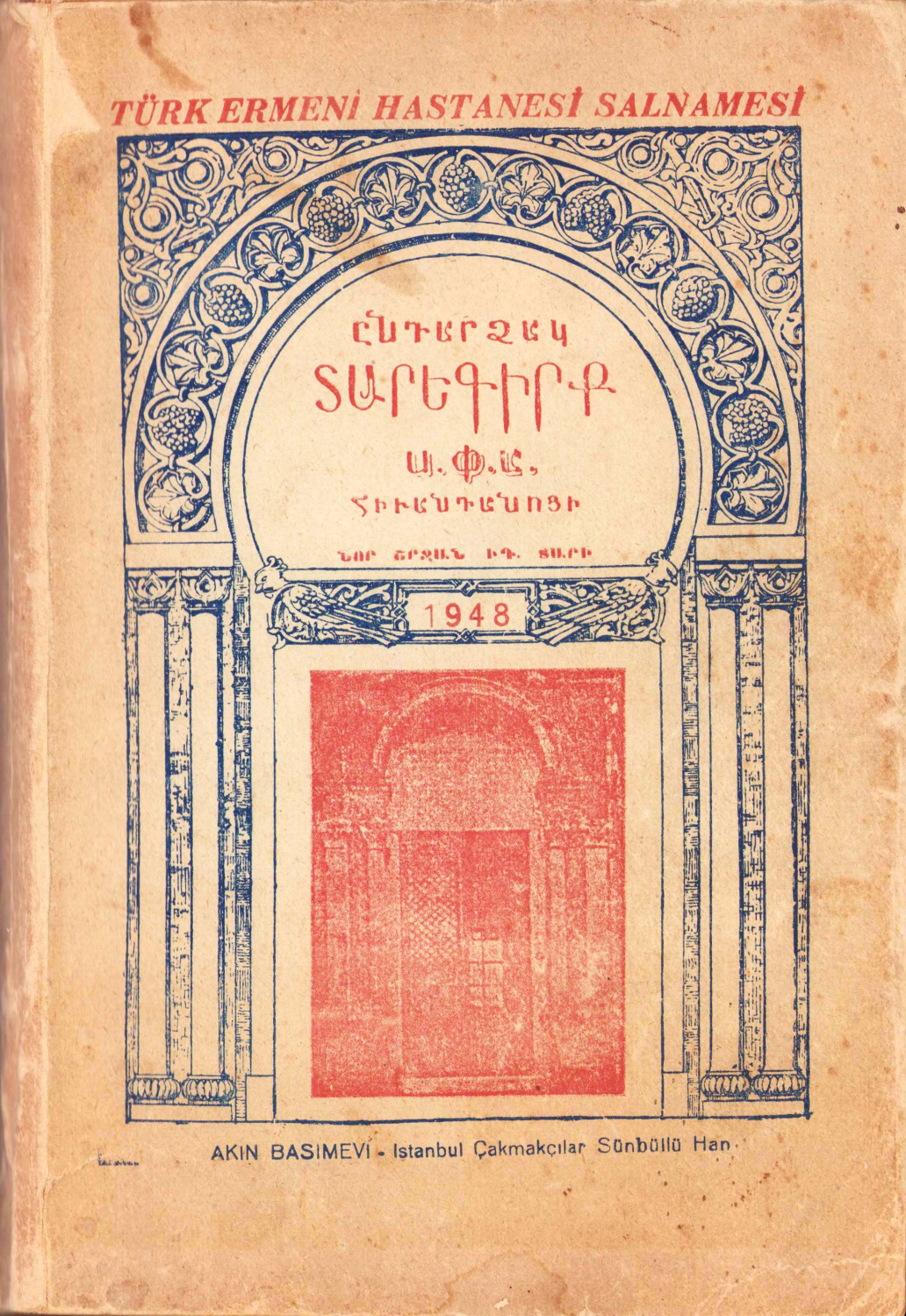 Türk Ermeni Hastanesi Salnamesi, İstanbul-Akın Basımevi, 1948 tarihli Türkçe Ermenice iki dilli, 432 sayfa,16x24cm