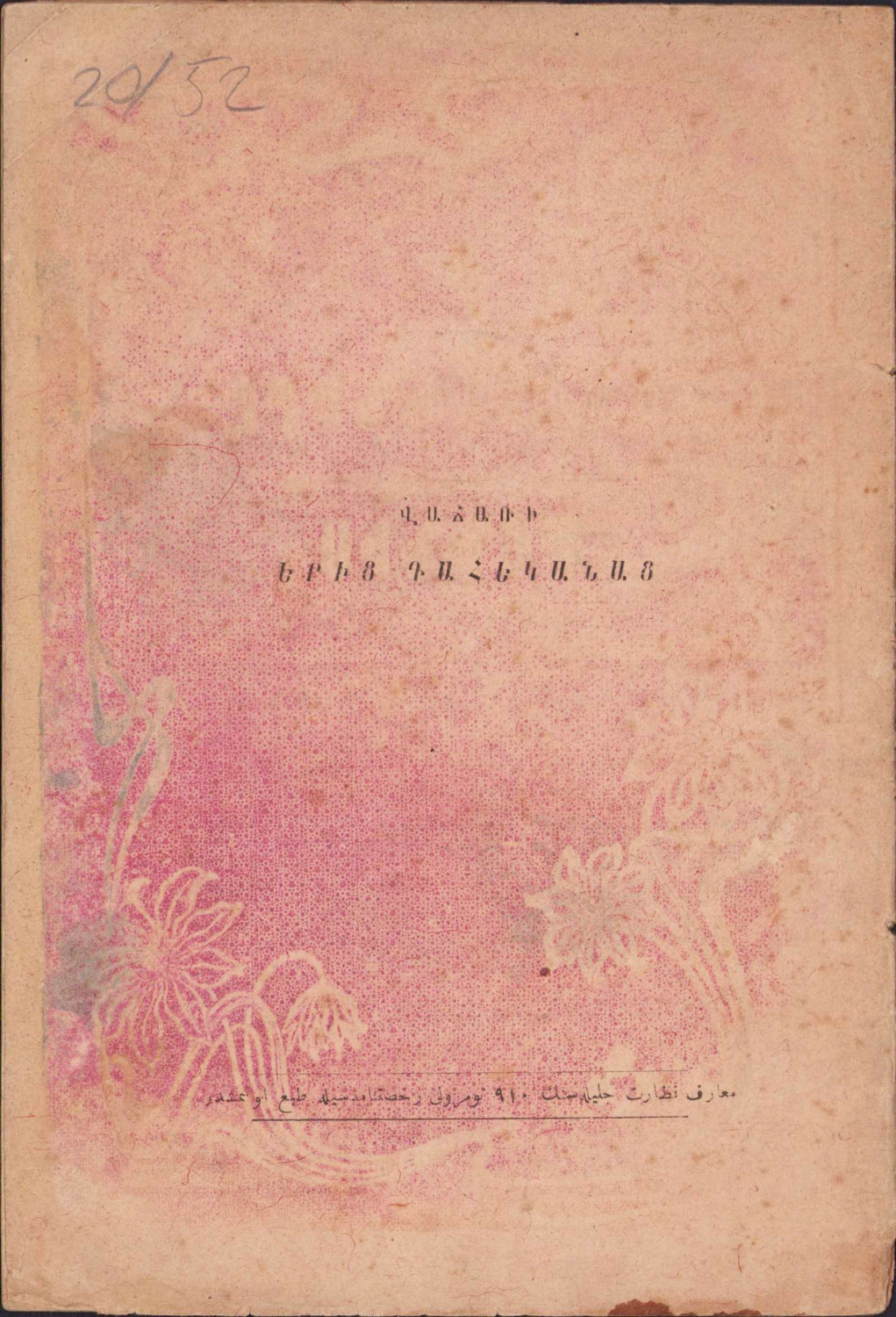 1886 tarihli Ermenice kitap, adab-ı muaşeret, düzgün davranma kuralları 16 sayfa, 13,5x20cm