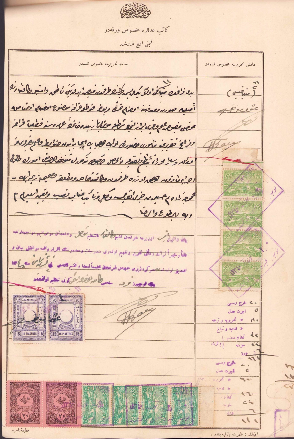 Osmanlıca Türkiye Cumhuriyeti katip adlinde görülen Rum azınlığın mülkiyetine dair 1340 tarihli evrak, 20x36 cm