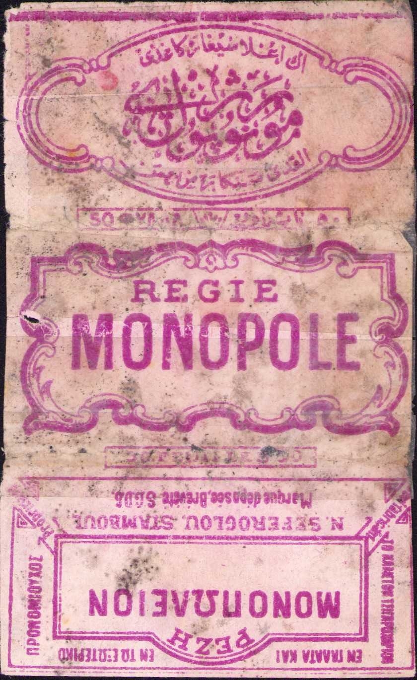 Osmanlıca - Frasızca - Rumca Regie Monopole marka sigara kağıdı, haliyle