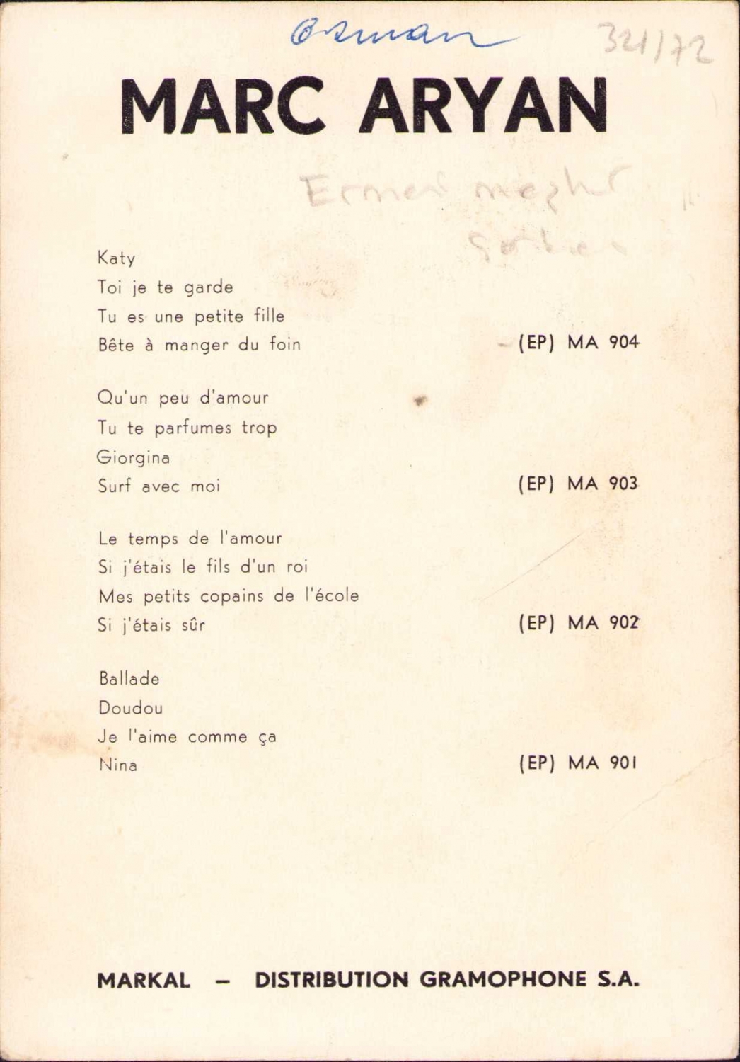 Ermeni meşhur şarkıcı Marc Aryan imzalı, 10x14 cm