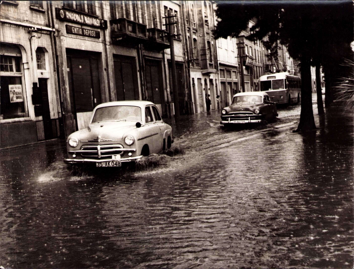 İzmir Anadolu Bankası Emti Deposu önünde arabalar, sosyal yaşam, 23x18 cm