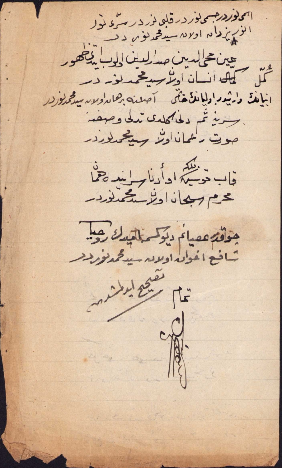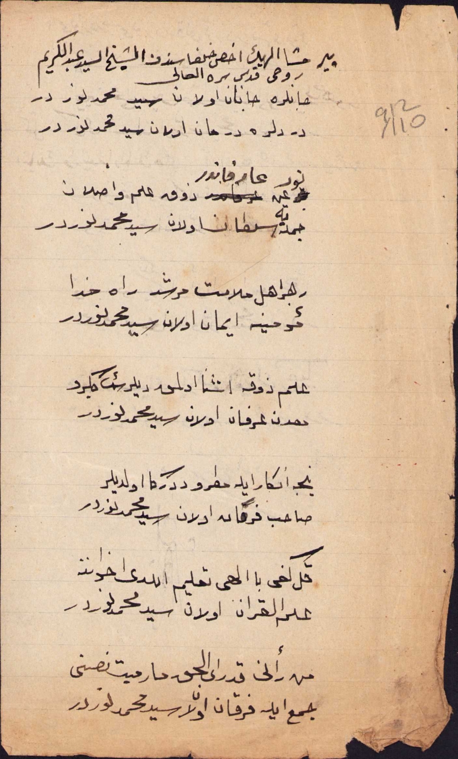 Osmanlıca Şeyh Seyyid Abdülkerim Ruhi'nin, Ruhi mahlaslı şiiri, 12x18 cm