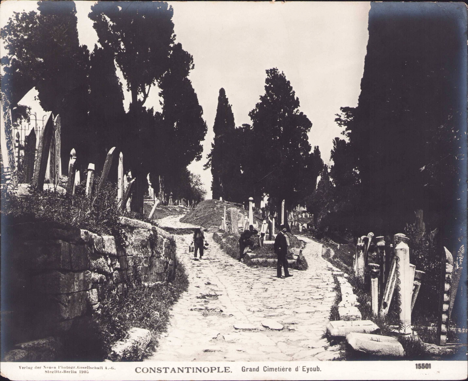 Osmanlı dönemi Eyüp Mezarlığı, Constantinople, Grand Cimetiere d'Eyoub, Fransızca, Steglitz Berlin, 1905, 23,5x19 cm.