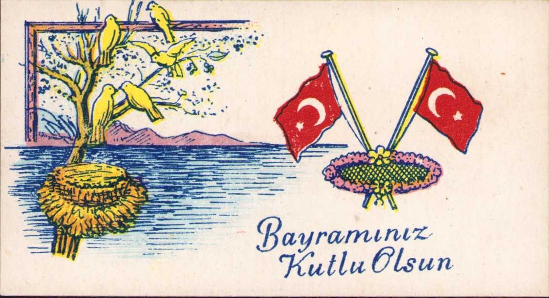 Bayrak görselli 'Bayramınız Kutlu Olsun' yazılı tebrik kartı, 9,5x5 cm.