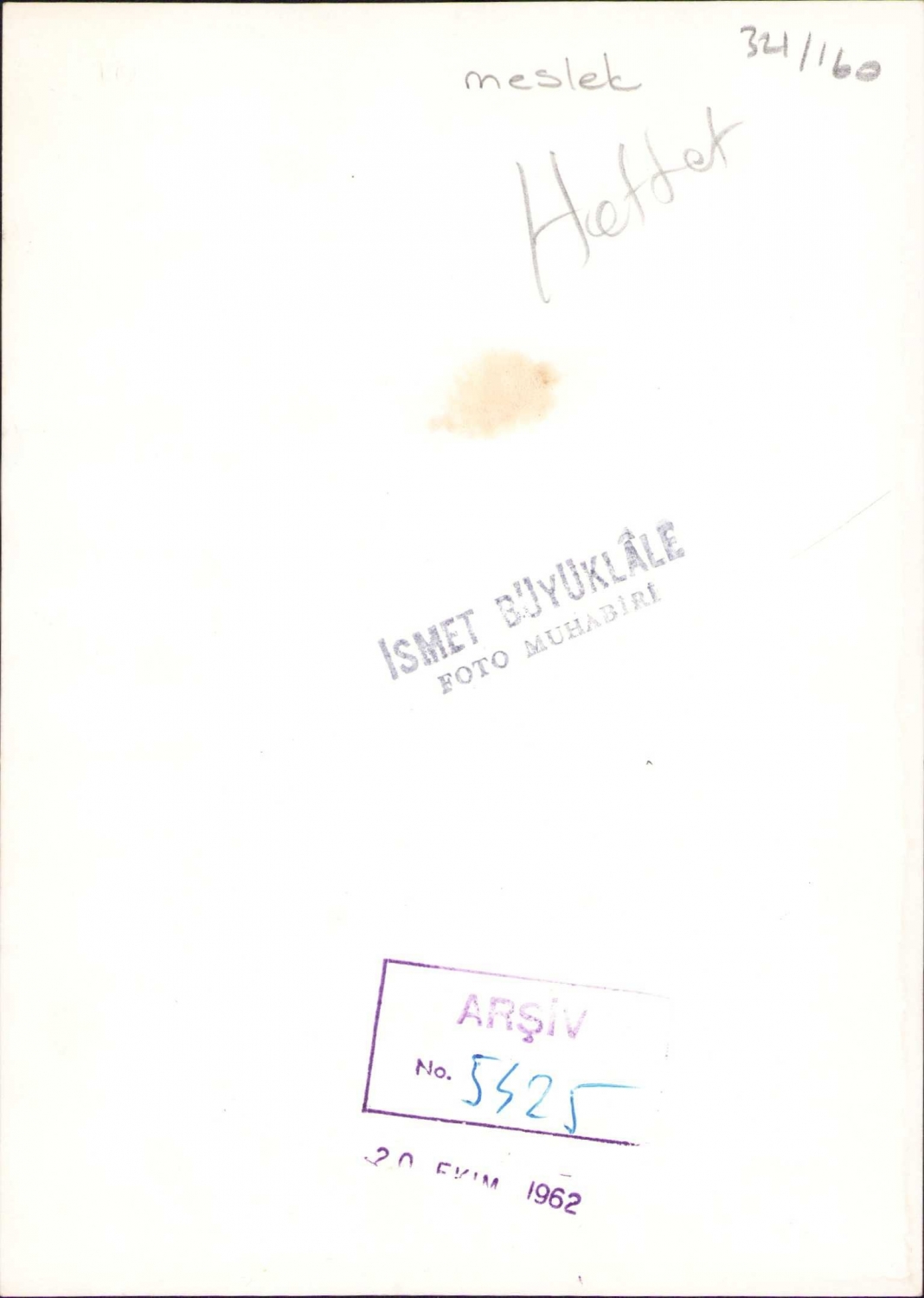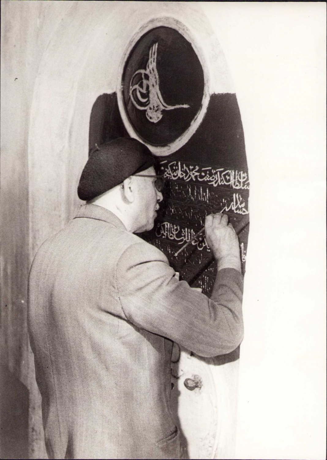 Kitabe restore eden Hattat, İsmet Büyüklale Foto Muhabiri damgalı,2o Ekim 1962 tarihli, 13x18 cm.