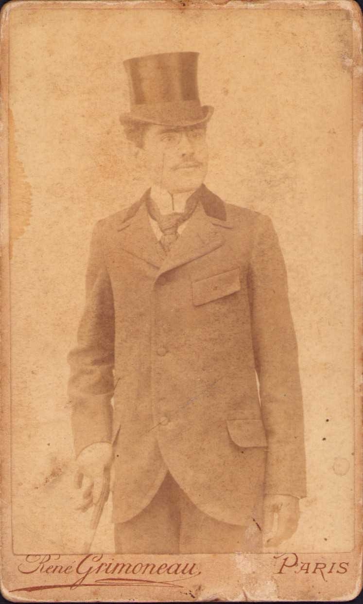 Rene Grimoneau Paris kabin fotoğrafı, arkası Osmanlıca 'Celaleddin Arif Bey'e ithaflı, Vehbizade[?] imzalı, 6,5x10,5 cm.