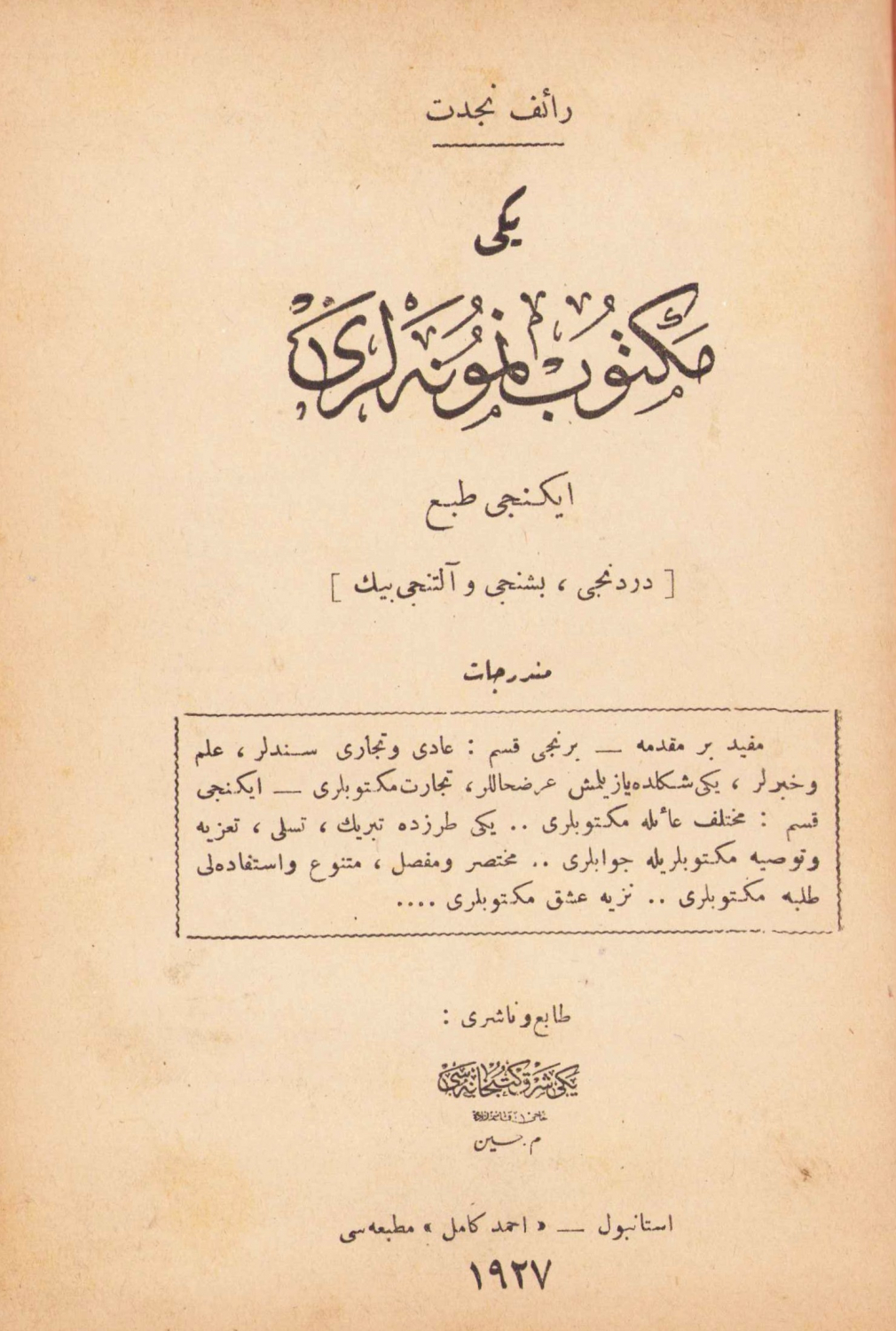 Yeni Mektup Numuneleri, Refik Necdet, İstanbul- Ahmet Kamil Matbaası, 1927 tarihli Osmanlıca, 214 sayfa, 13,5x20cm