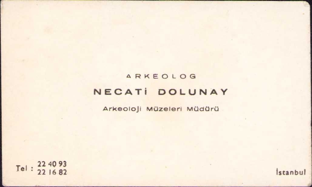 Arkeolog Necati Dolunay Arkeolog Necati Dolunay kartvizit, İstanbul, 8,5x5,5 cm.