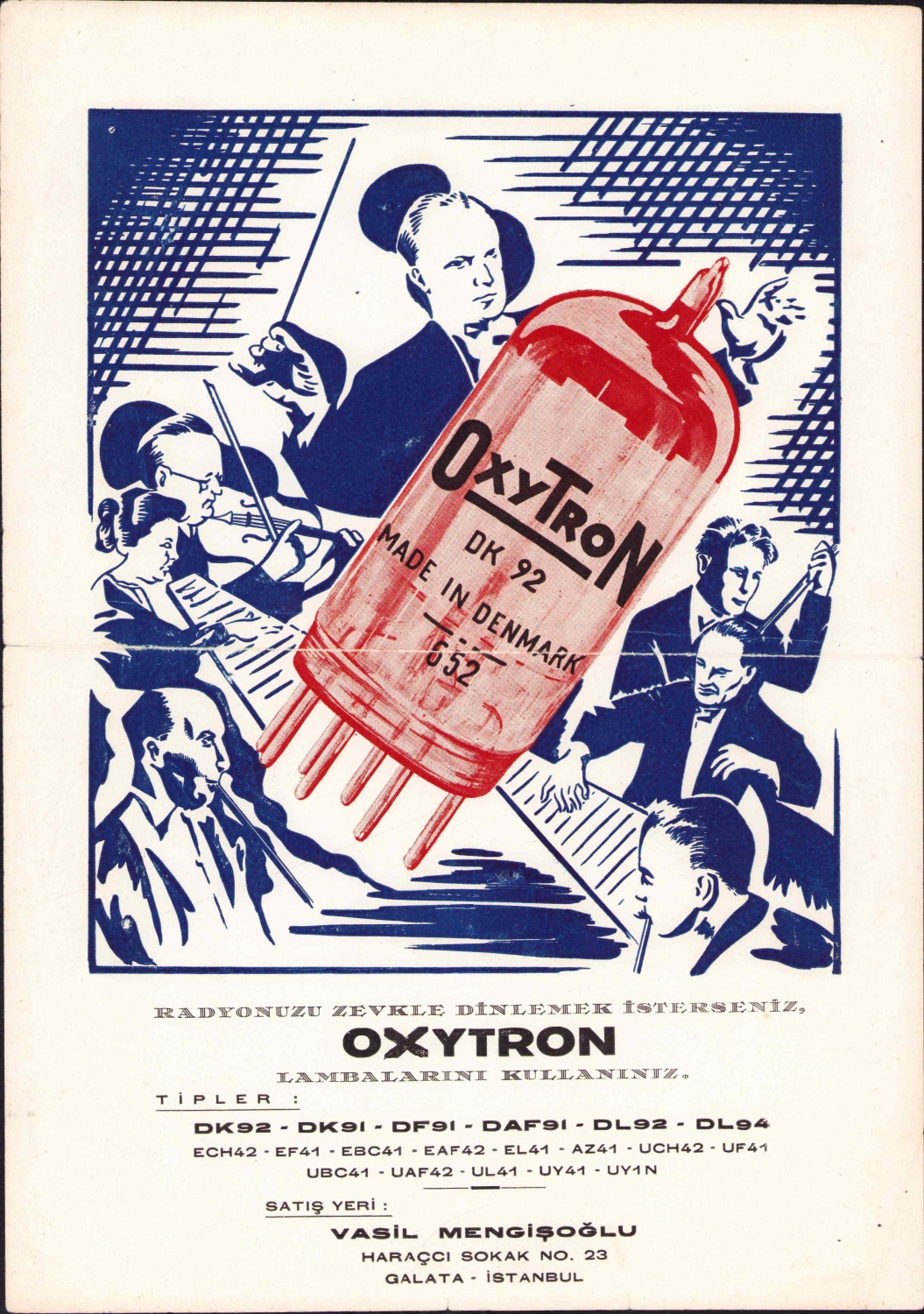 Oxytron Lambaları el ilanı, Vasil Mengişoğlu, Galata İstanbul, 22,5x36,5 cm.