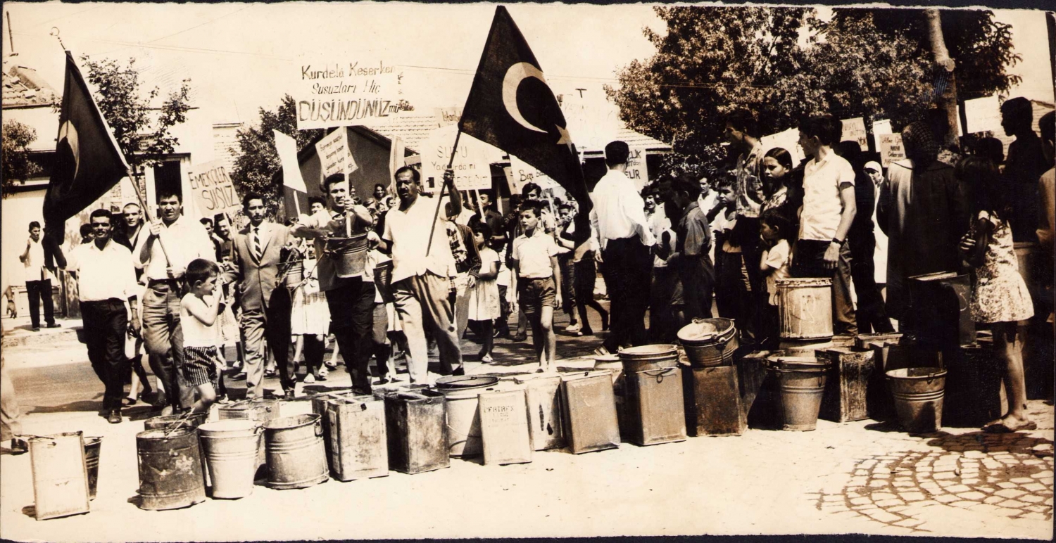 Gaziosmanpaşa Susuzluk Protesto Yürüyüşü, 'Kurdela Keserken Susuzları Hiç Düşündünüz mü' 'Emekçiler Susuz' yazılı pankartlarla, 24x12 cm.