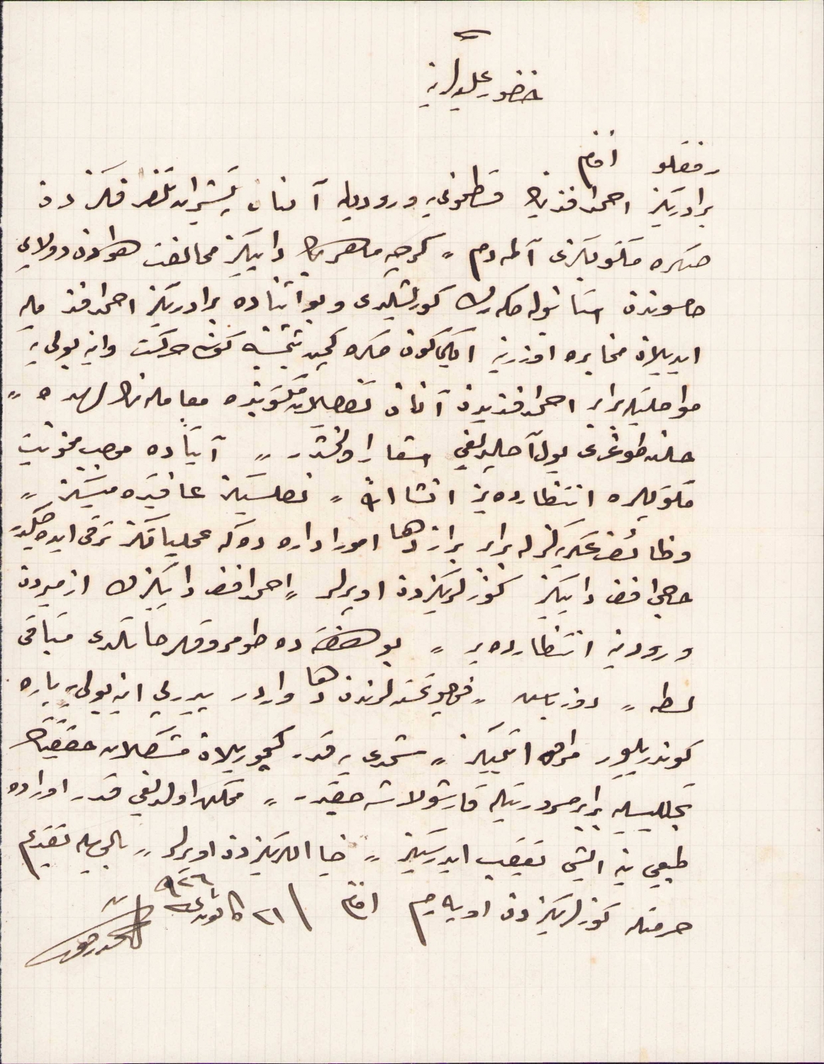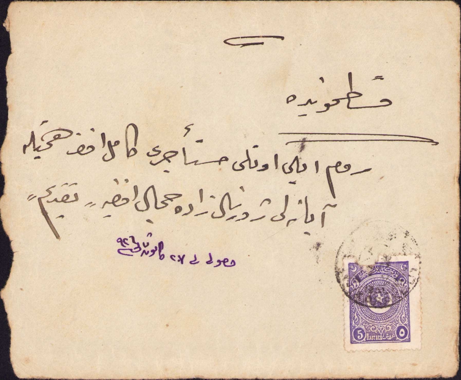 Kastamonu'da Cemil Bey'e gönderilmiş, 1926 tarihli Osmanlıca mektup ve zarfı, damgalı ve pullu, Ahmed Refik imzalı, 15x12,5 cm.
