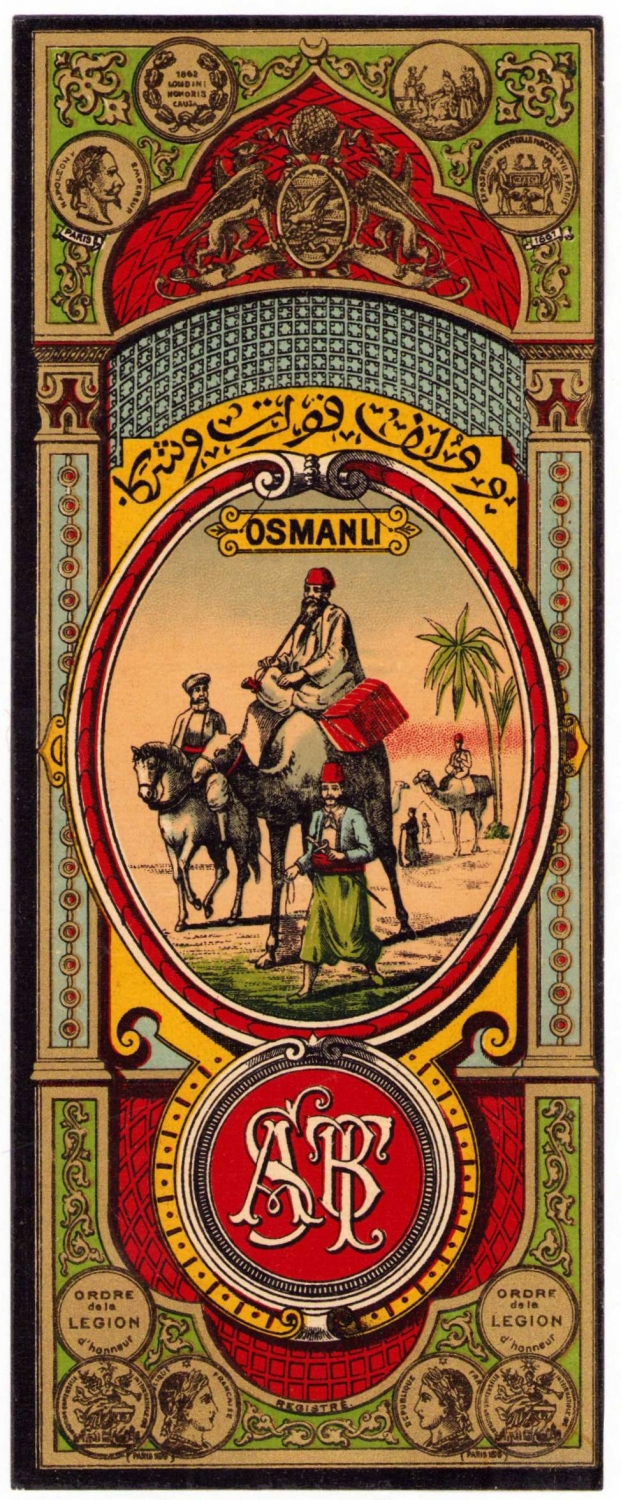 Osmanlı dönemi fes etiketi, Fransızca 'Ordre de la Legion d'honneur' yazılı, 9,5x23,5 cm.