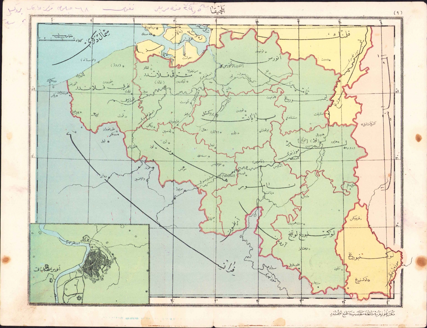 Osmanlıca Belçika haritası, Mewkteb-i Fünun-u Harbiye Şahane Matbaası, 31x24 cm.