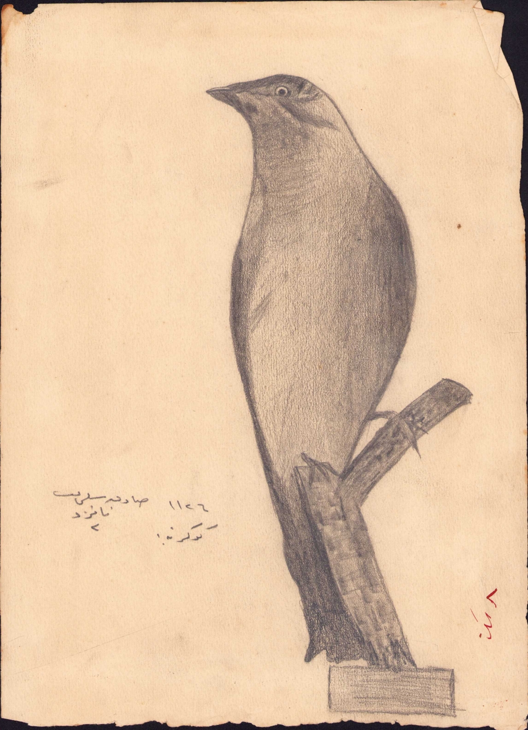 Kara Kalem Güvercin çizimi, Sadık Süleyman imzalı, 19x26 cm.