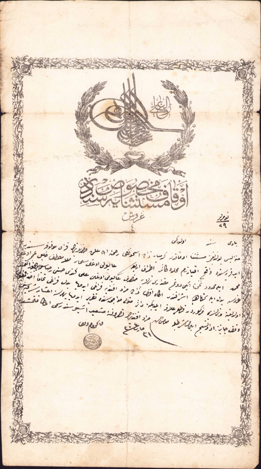 Evkaf-ı Müstesnaya Mahsus 4 Kuruşluk Sened, Osmanlıca, 1304 tarihli, 20x36 cm.