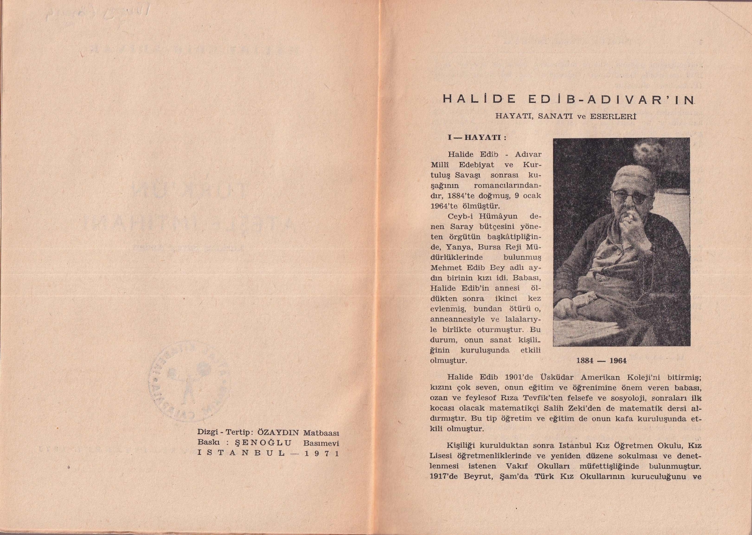 Türkün Ateşle İmtihanı -Anı-, Halide Edip Adıvar, İstanbul 1971.