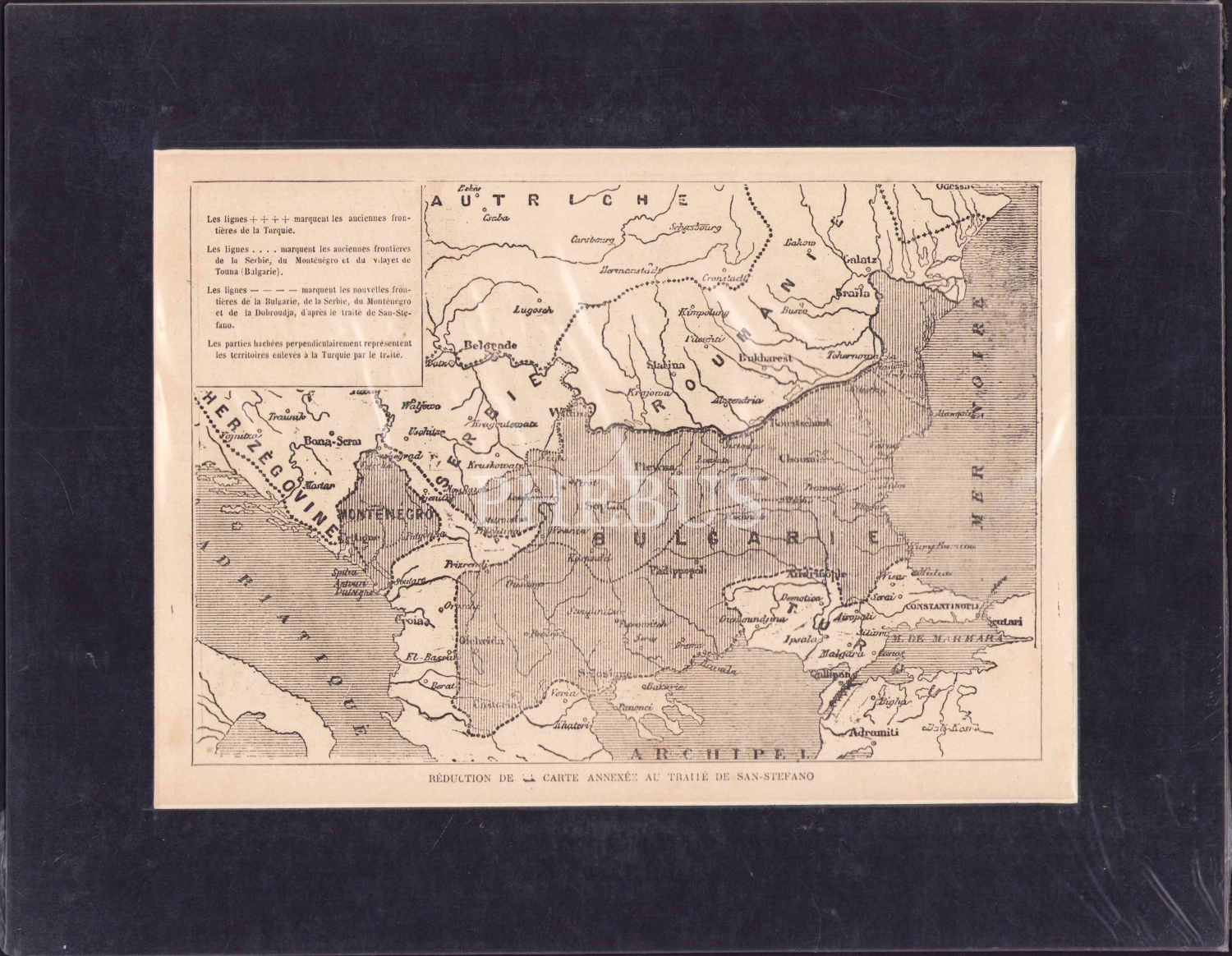 Dergiden çıkma gravür, San Stefano Antlaşmasına gör Balkan Haritası, Fransızca,
