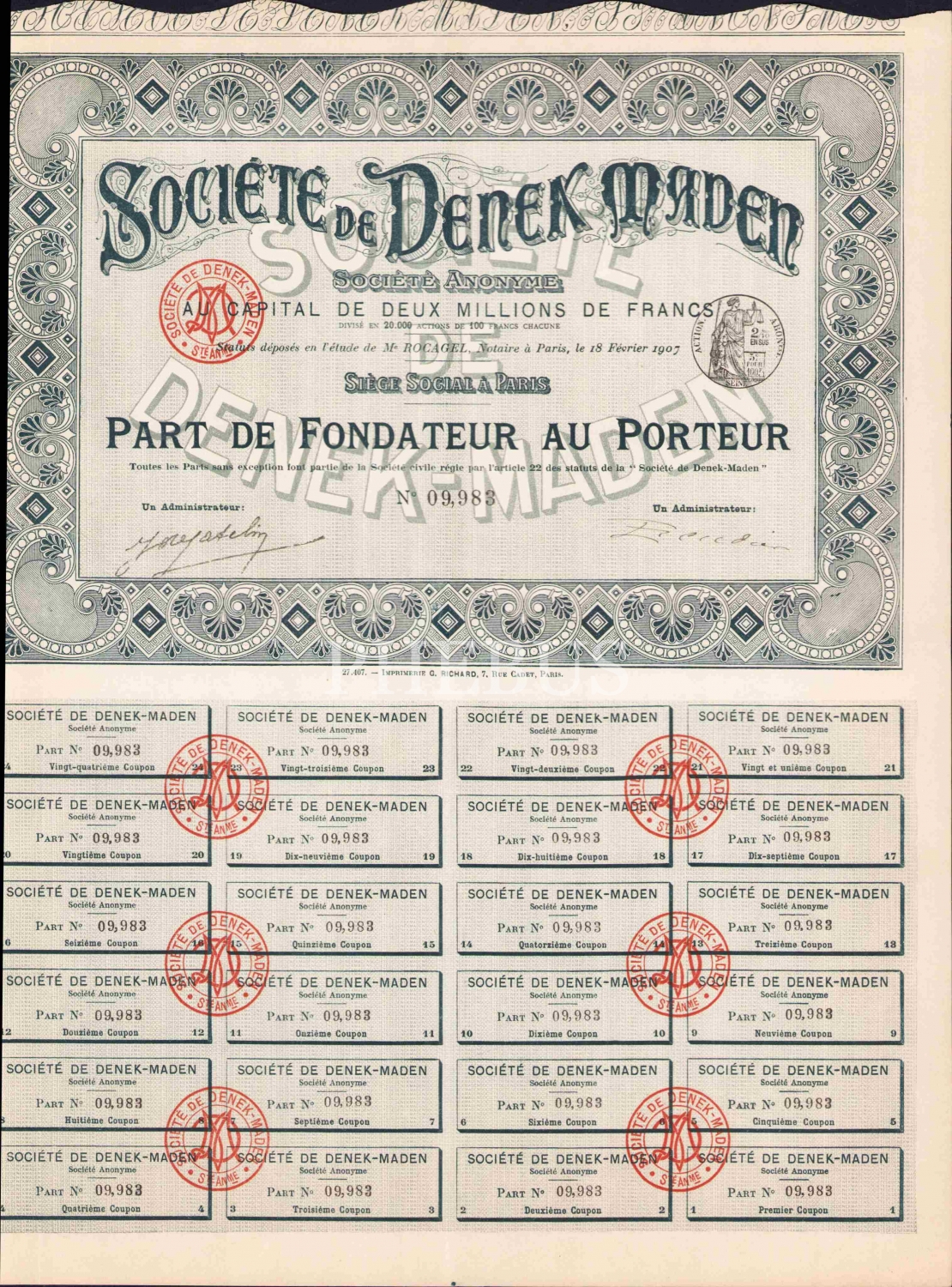 Societe de Denek Maden'e ait hisse senedi, 31,5x39,5 cm.