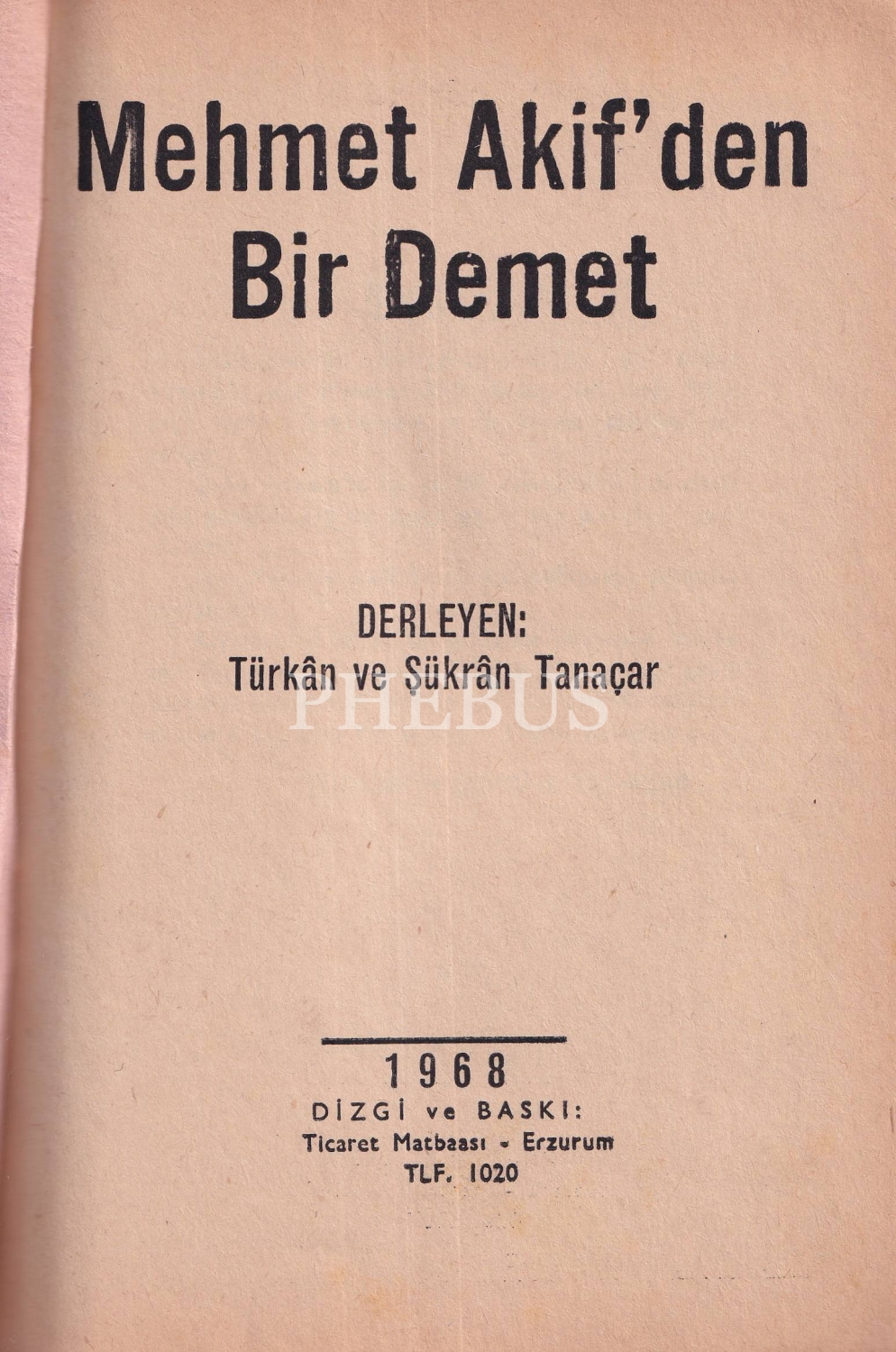 Mehmed Akif'den Bir Demet, Derleyenler: Milliyetçi Öğretmenler Türkan ve Şükran Tanaçar, Erzurum, 1968, 14x20 cm.