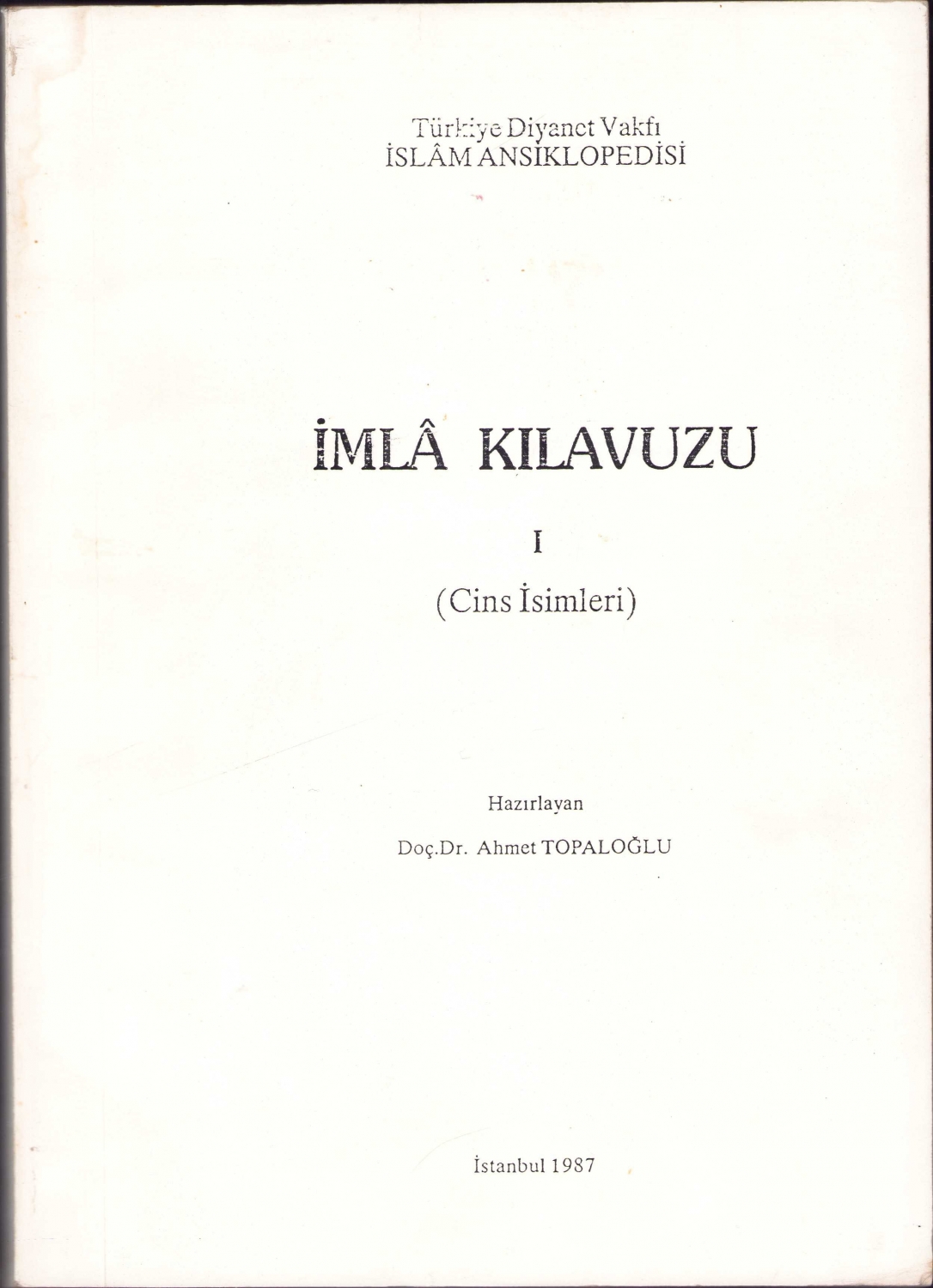 Türkiye Diyanet Vakfı, İmla Kılavuzu I Cins İsimleri, Hazırlayan: Ahmet Topaloğlu, İstanbul, 1987, Fotokopi, 125 sayfa, 21x29 cm.