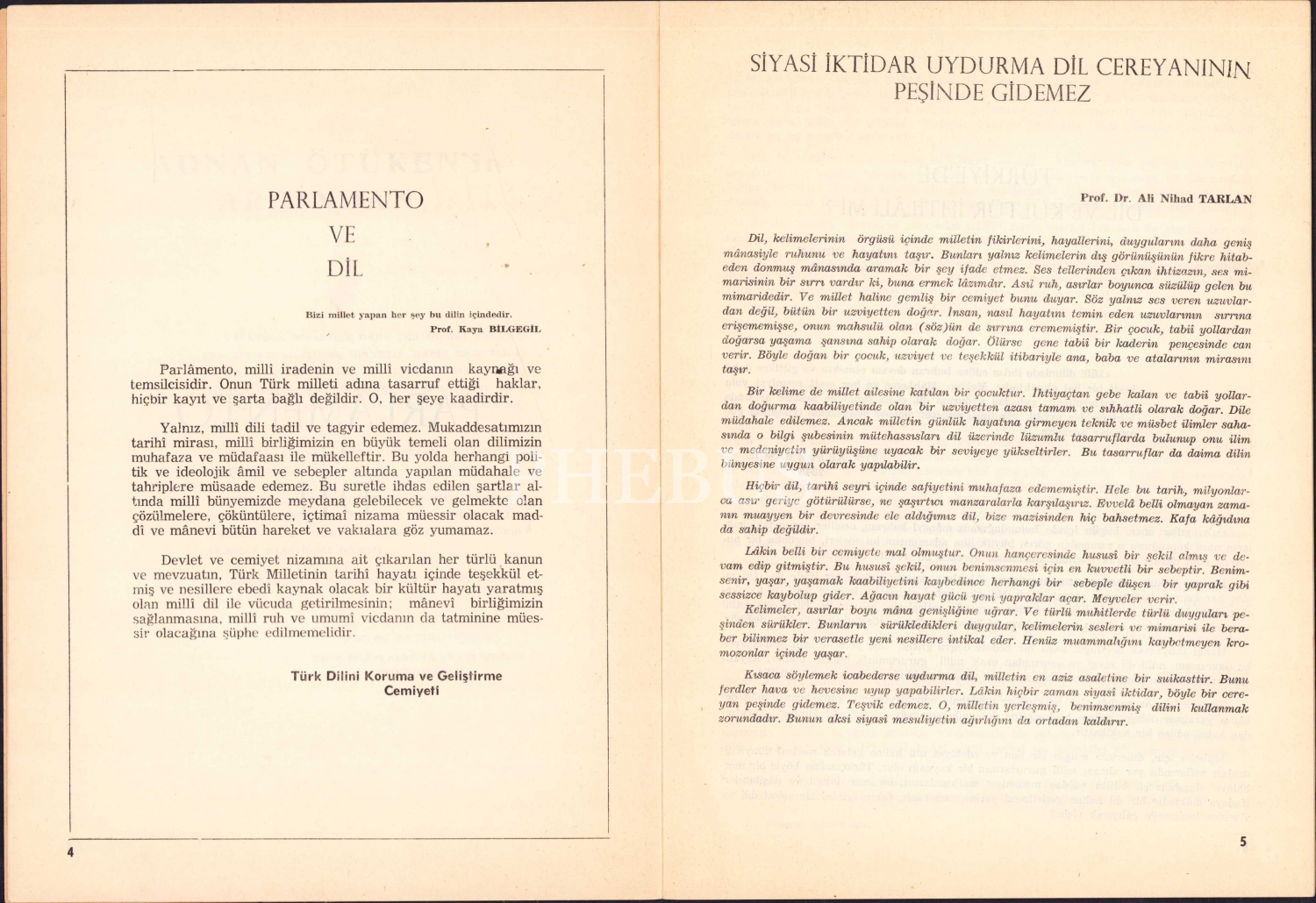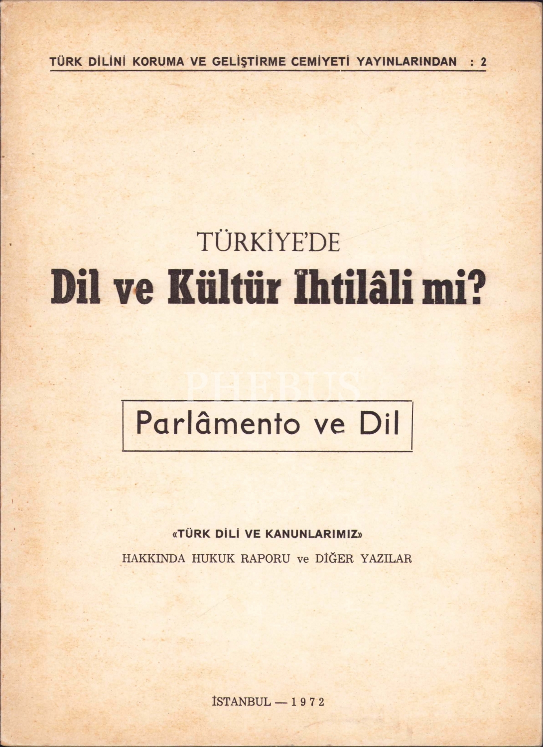 Türkiye'de Dil Kültür İhtilali mi?, Parlemento ve Dil, Türk Dili ve Kanunlarımız Hakkında Hukuk Raporu ve Diğer Yazılar, İstanbul, 1972, Türk Dilini Koruma ve Geliştirme Cemiyeti Yayınları:2, 24 sayfa, 20x28 cm.