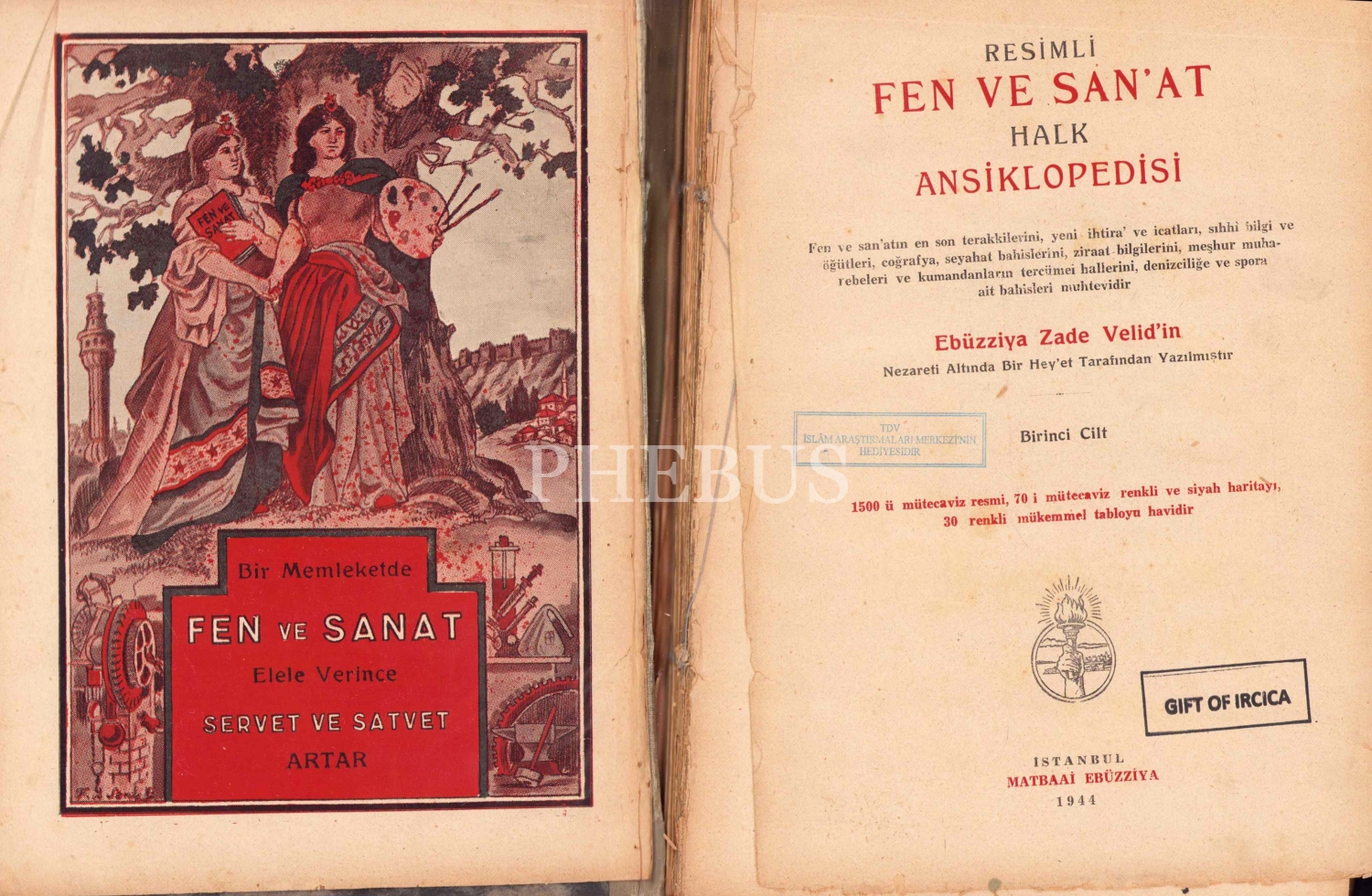 Resimli Fen ve Sanat Halk Ansiklopedisi, Ebuziya Zade Velid, Birinci Cild, İstanbul, Matbaa-i Ebüzziya, 1944, haliyle, 20x28 cm.