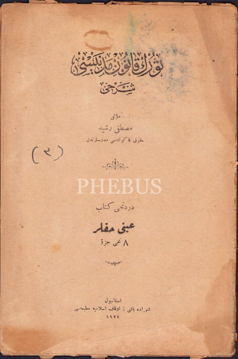Türk Kanun-ı Medenisi Şerhi, Mustafa Reşid, Dördüncü Kitap, İstanbul, Evkaf-ı İslamiye Matbaası, 1927, 191 sayfa, kapağı haliyle, 15x22 cm.