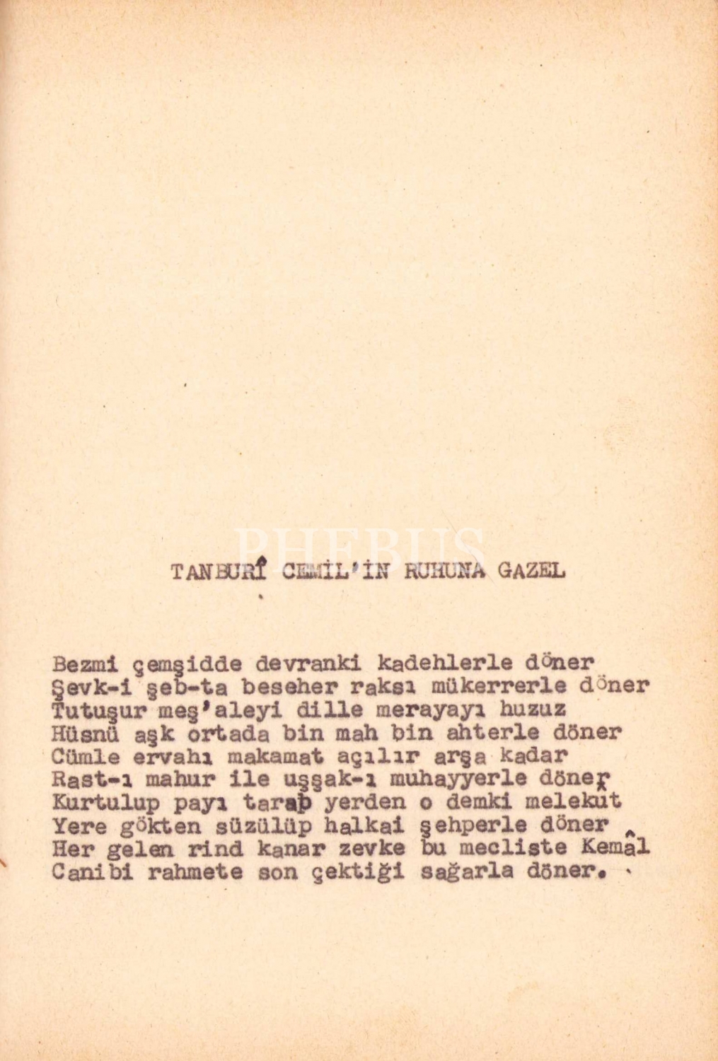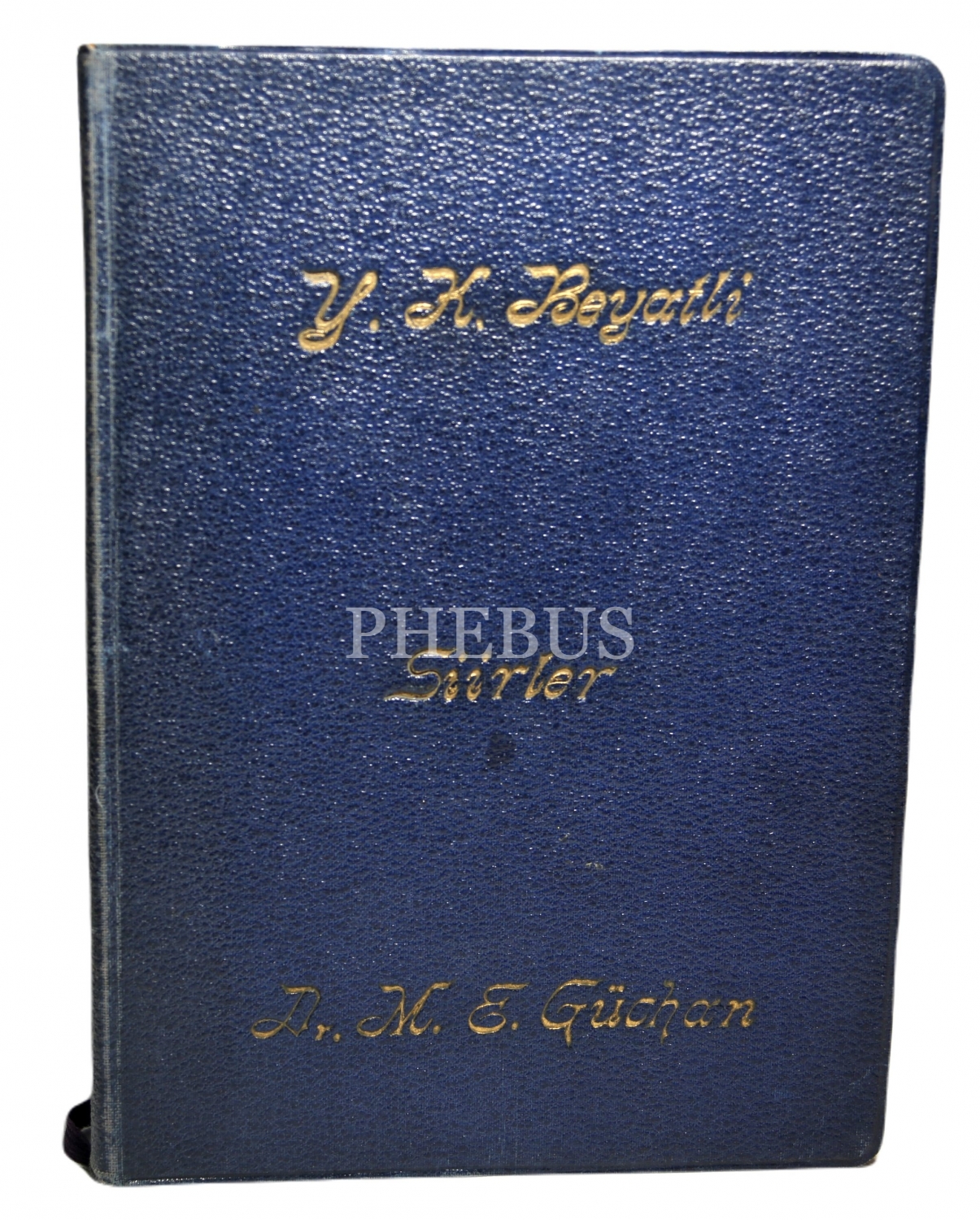 Yahya Kemal Beyatlı [vefatı:1958], hayatta iken kendi müsaadesiyle herhangi bir kitabı yayınlanmamıştır. Fakat şairin sevenlerinden bazıları Yahya Kemal'in şiirlerini bazen el yazılarıyla defterlerine kaydetmiş, bazen de daktilo metinler halinde derlemişlerdir. Müzayedemizin bu lotunda dikkatinize sunduğumuz daktilo şiirler derlemesi, bir kitap formunda hazırlanmış olup, şiirler konularına göre ayrılmıştır. Muhtelif şiirlerin üzerinde düzeltmeler de mevcuttur. 1944'te yapılan bu şiir derlemesi, Ekim 1945 tarihinde Yahya Kemal'in sohbet çevresinden olan Doktor Muzaffer Esat Güçhan'a imzalanmıştır. İthaf, "Sayın büyüğüm Prof. Dr. Muzaffer Esat Güçhan'a minnet ve şükranlarımla 7.10. 1945" şeklindedir. / İmza Yahya Kemal'e ait değildir.