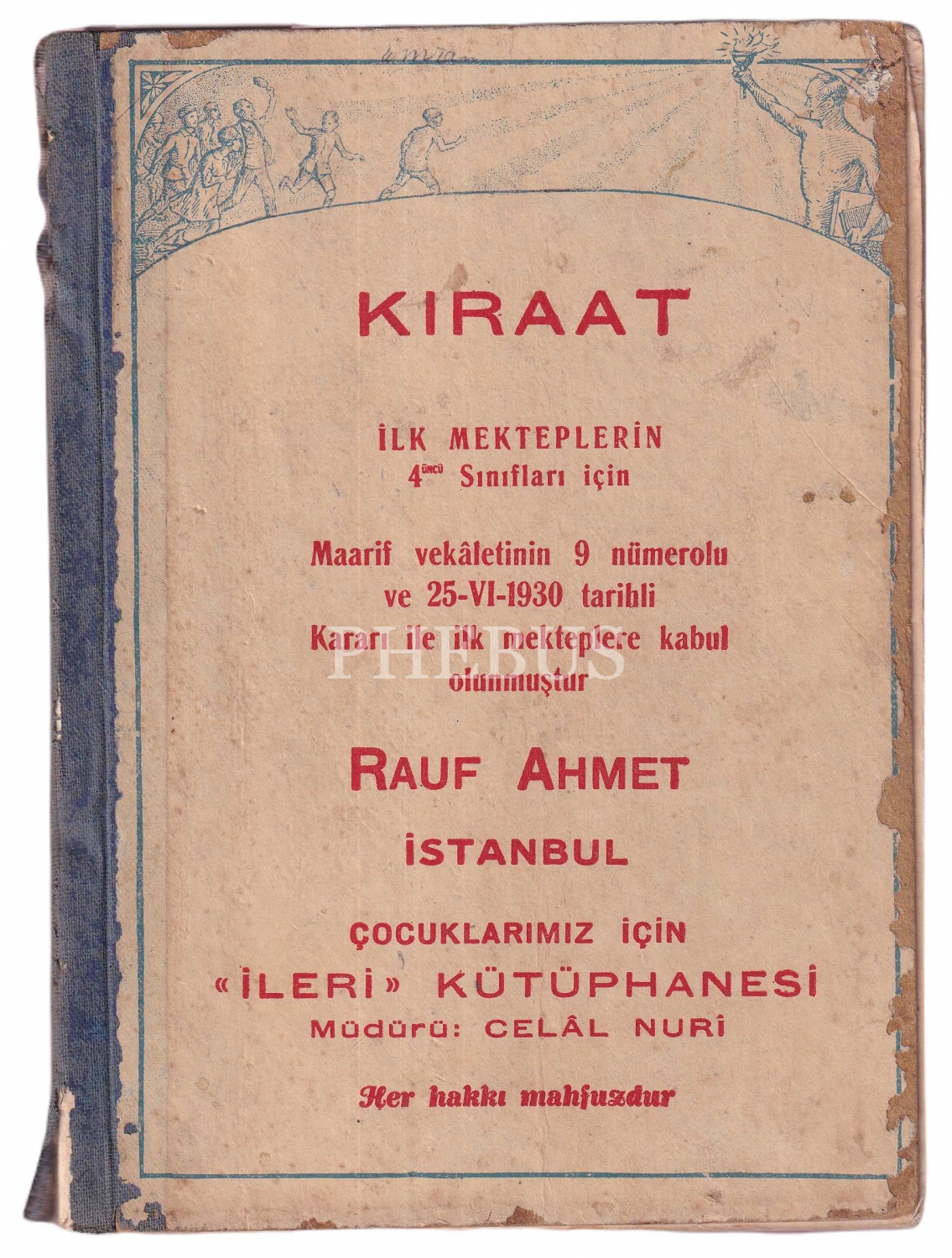 Kıraat İlk Mekteplerin 4'üncü Sınıfları İçin, Rauf Ahmet, İstanbul, İleri Kütüphanesi, cildi haliyle, 143 sayfa, 14x19,5 cm.