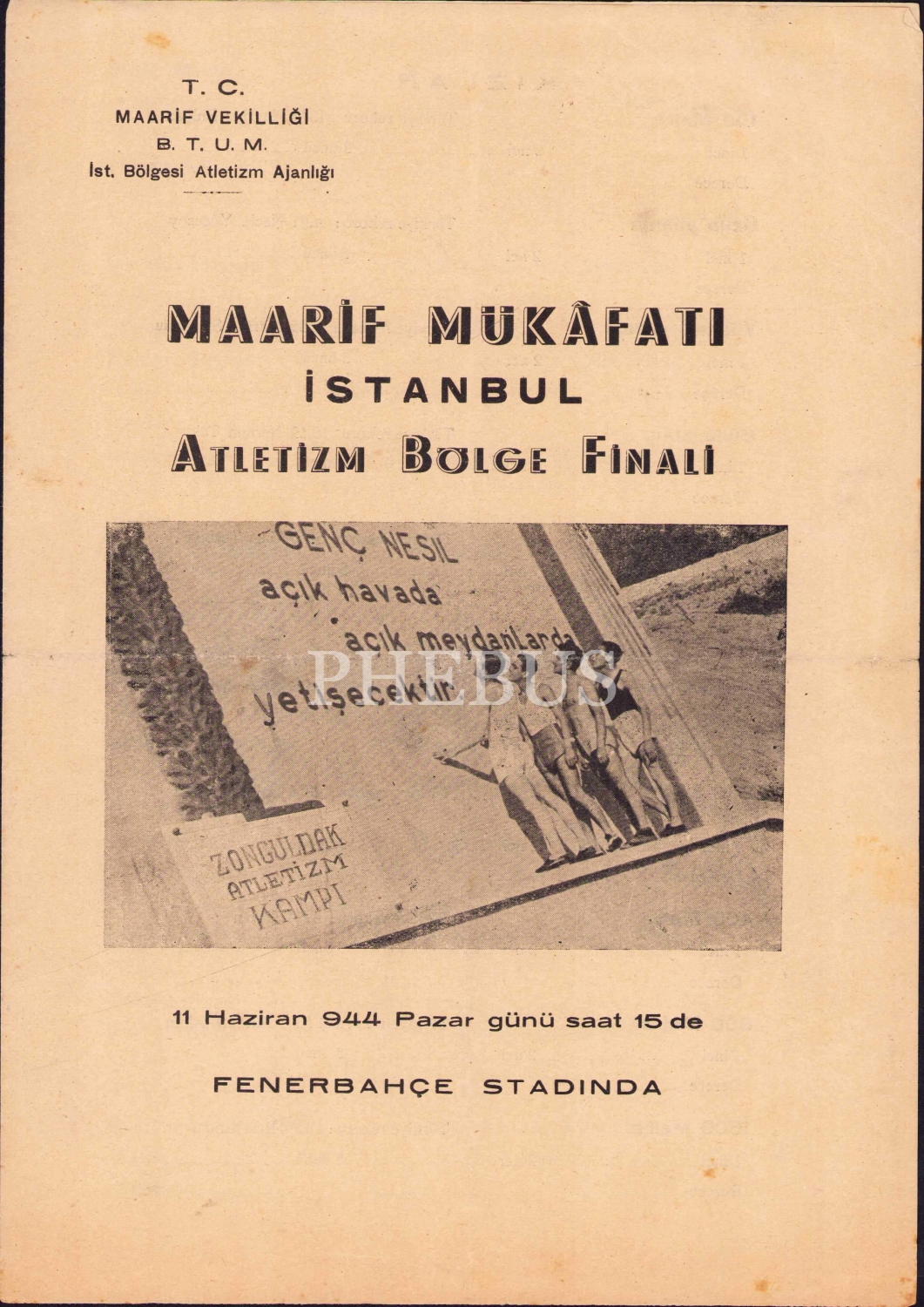 Maarif Mükafatı, İstanbul Bölge Finali, 11 Haziran 1944 Fenerbahçe stadında. 20x229 cm, 2 sayfa.