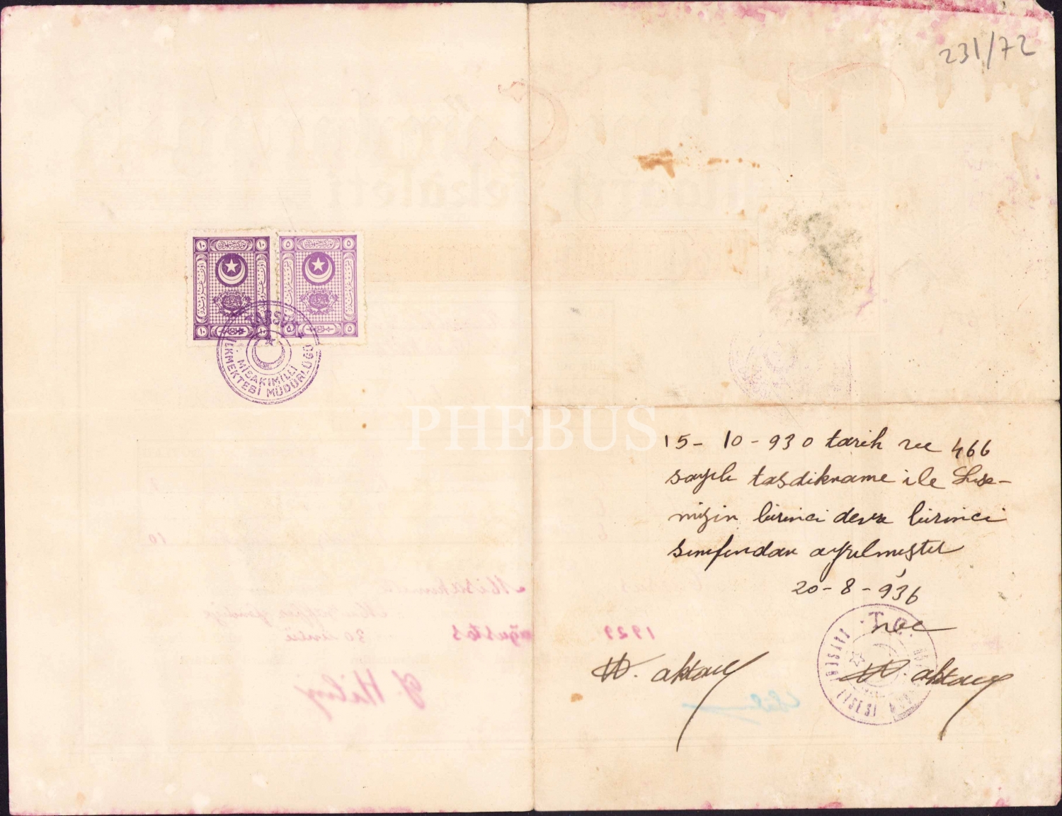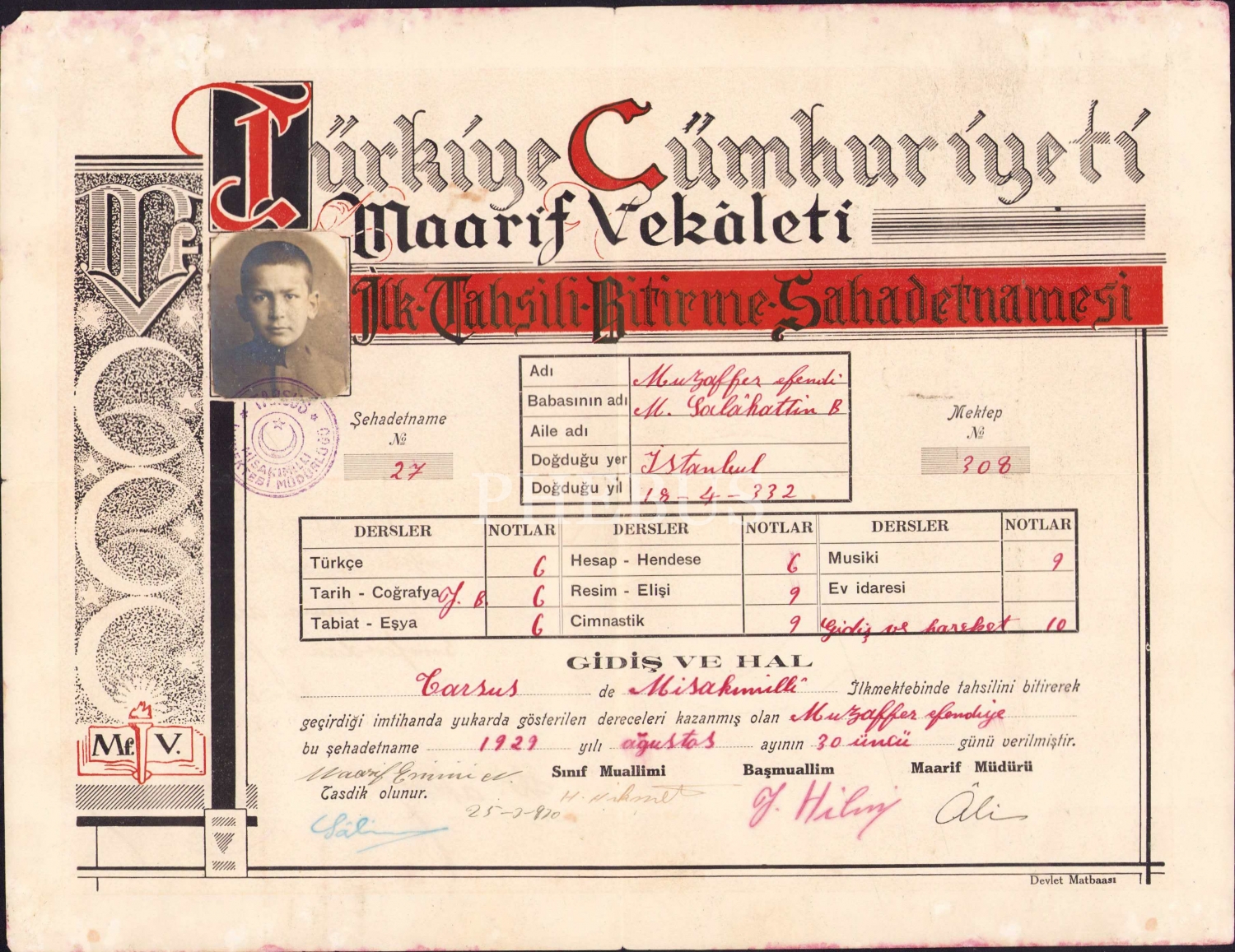 Tarsus, Misak-ı Milli İlkokul Diploması, 23x30 cm.