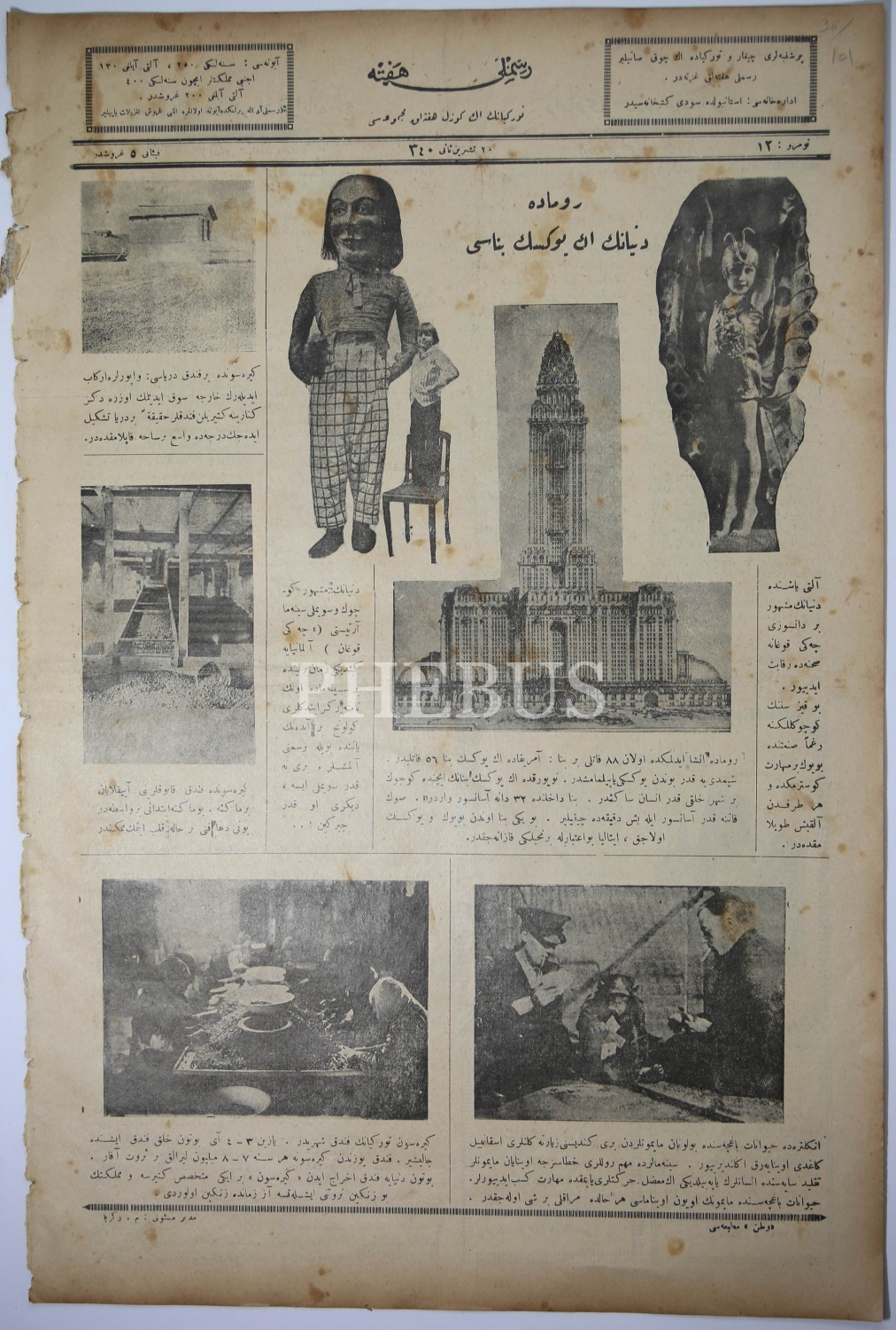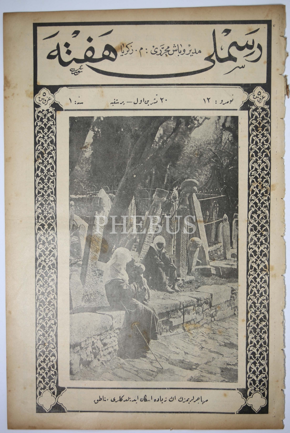 Resimli Hafta, Kapak: Muhacirlerimizin En Ziyade İskan Edildikleri Mıntıkalar, Müdür ve Baş Muharrir: M. Zekeriya, Numara:12, 20 Teşrin-i Evvel 1340, Osmanlıca, 8 sayfa, 30x45 cm.