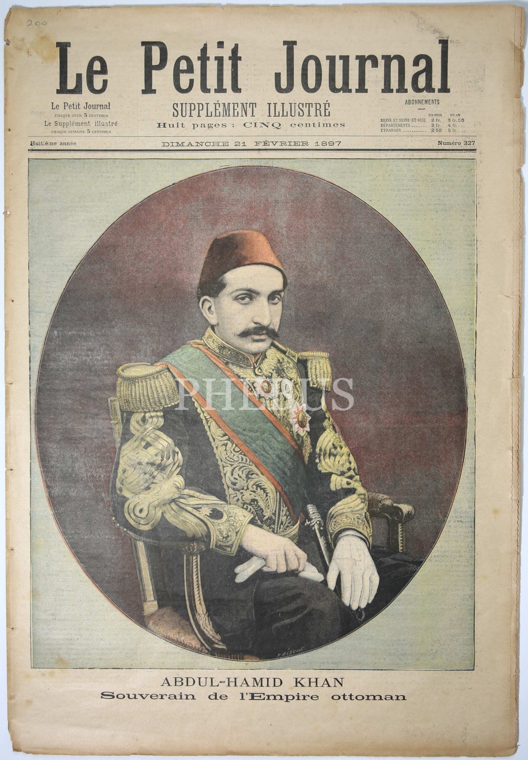 Le Petit Journal, Kapak: Sultan II. Abdülhamid, 21 Şubat 1897, 8 sayfa, Fransızca, 30x43,5 cm.