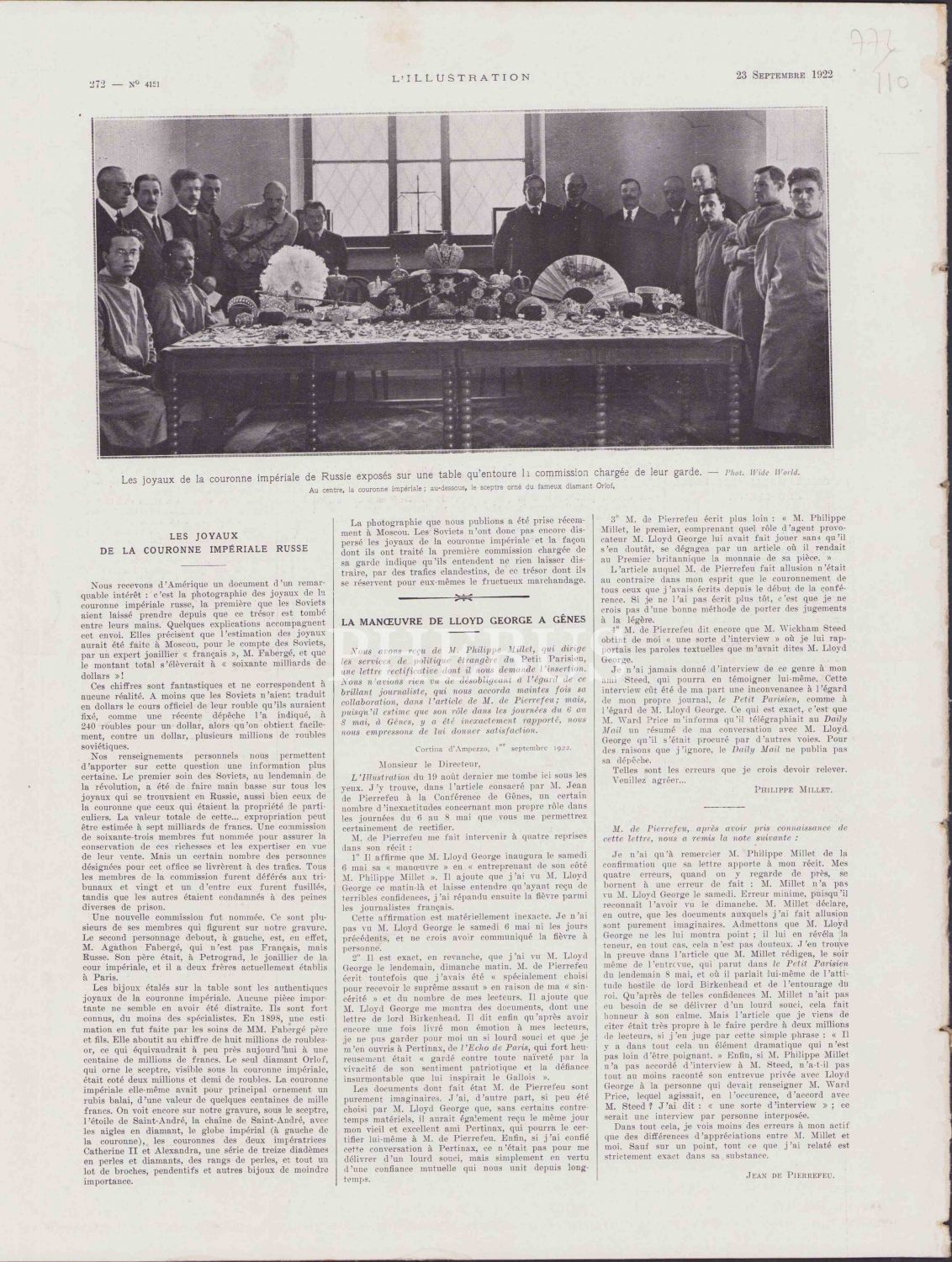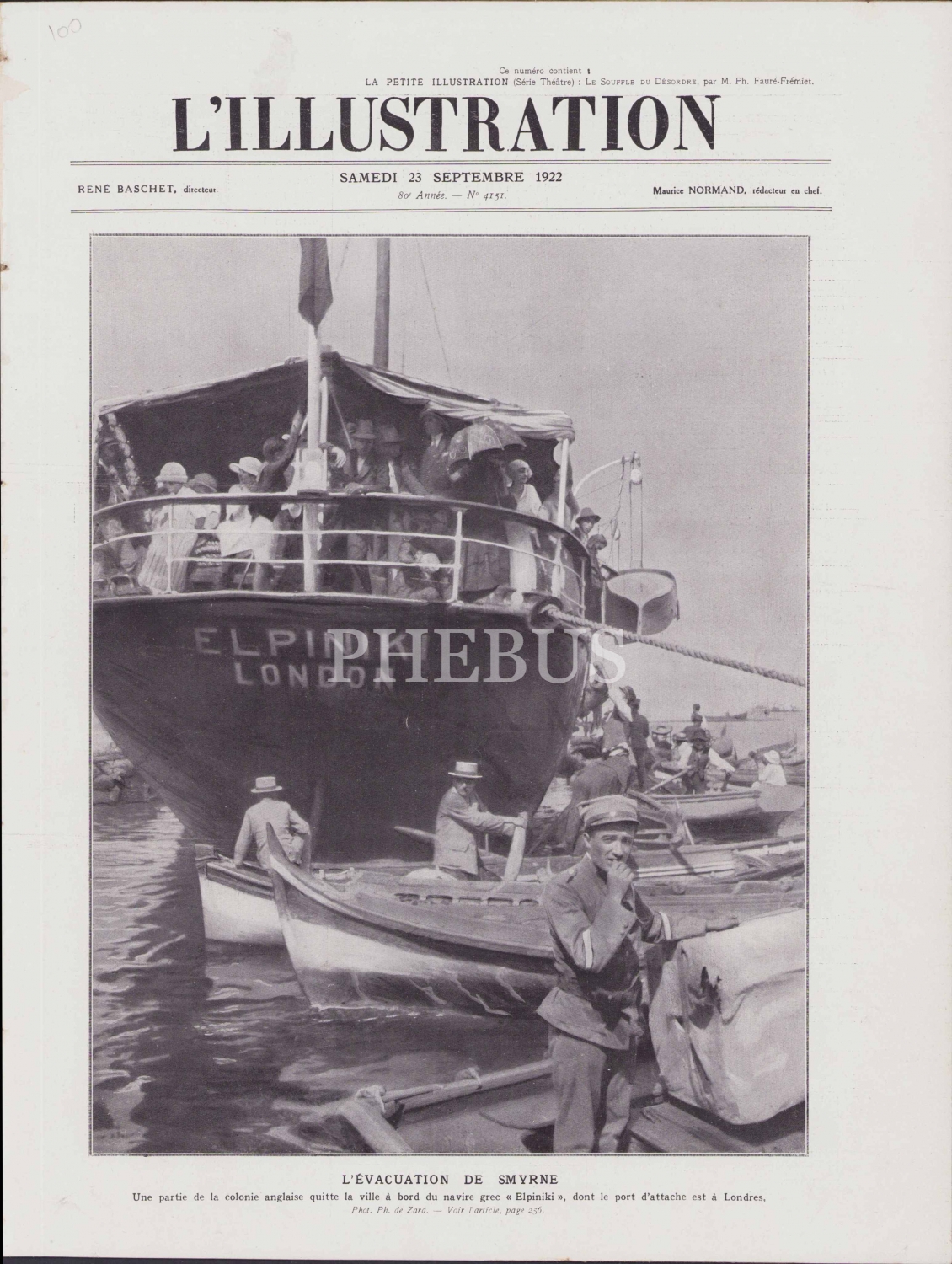 L'Illustration Dergisi, Kapak: Londra Gemisiyle İzmir'in Tahliyesi [Smyrne], 25 Septembre 1922, 20 sayfa, Fransızca, 29x39 cm.