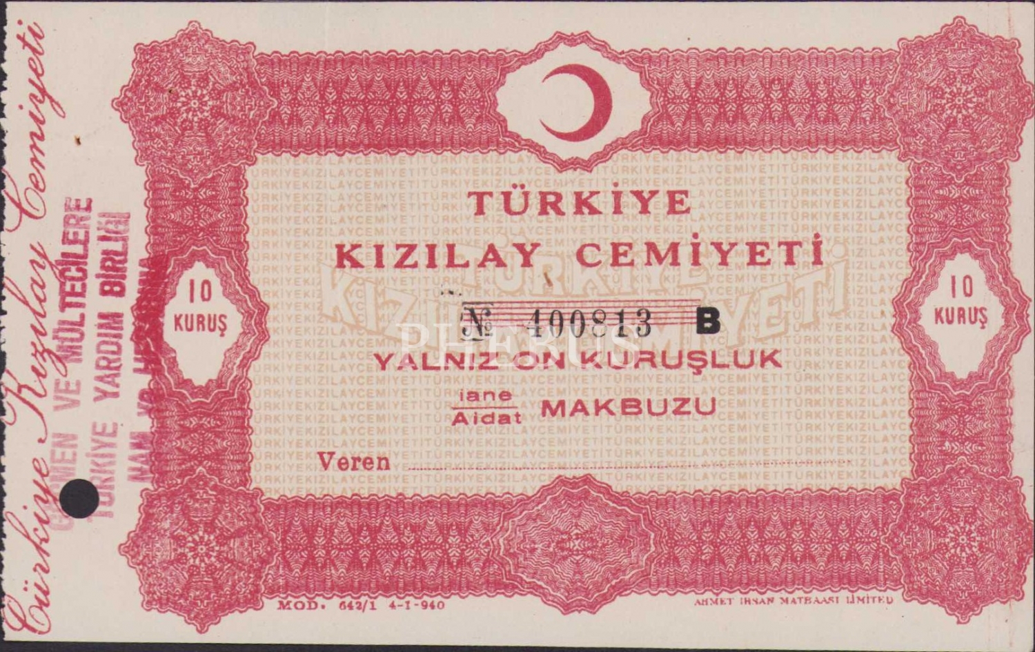 Türkiye Kızılay Cemiyeti Makbuz, 13x8 cm.