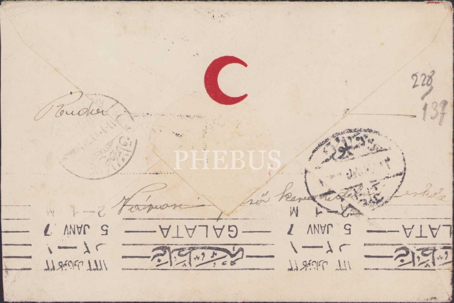 Hilal-i Ahmer amblemli zarf, Galata damgalı, 1332 tarihli, postadan geçmiş, 9x14 cm.